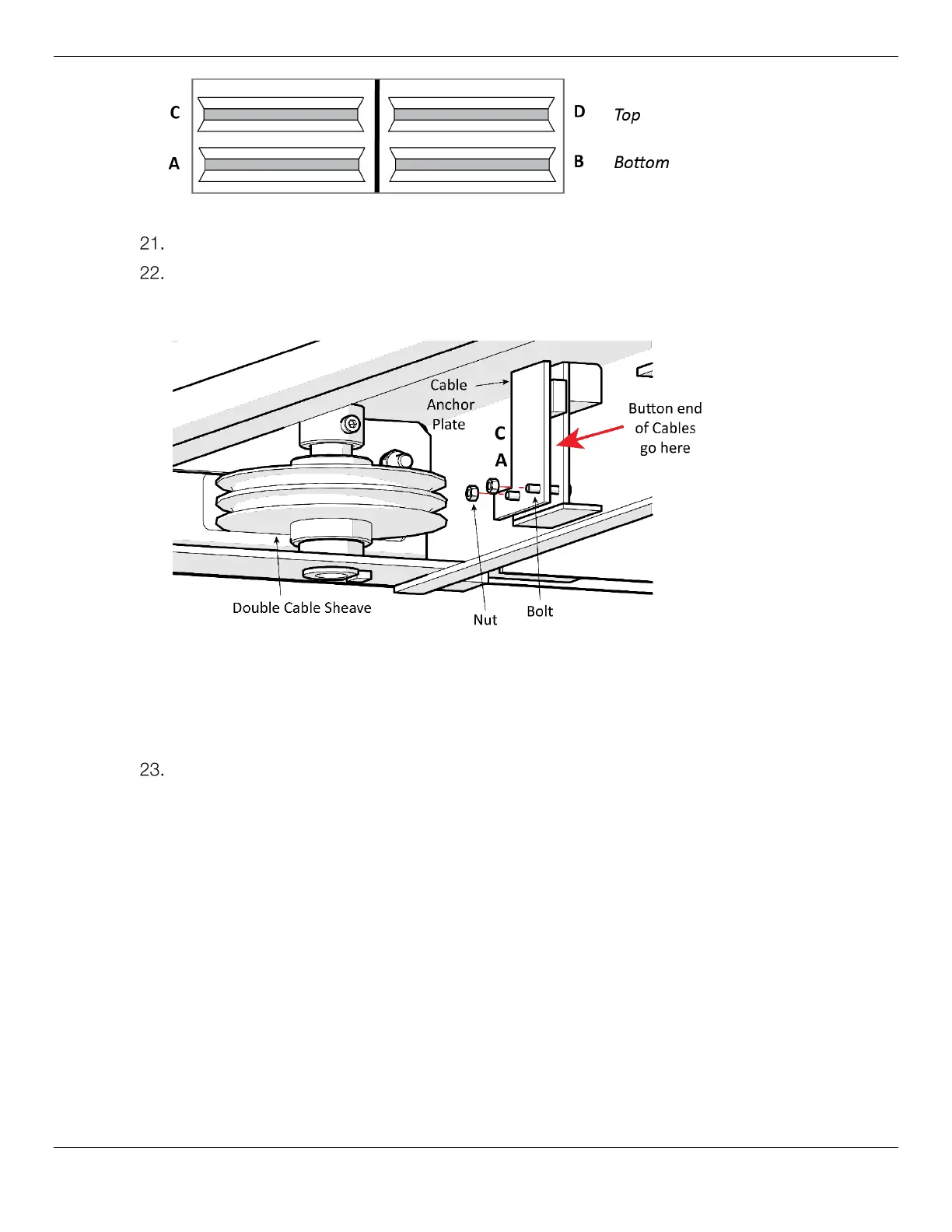 secure in the Cable Anchor Plate, you can temporarily remove the Double Cable Sheave in