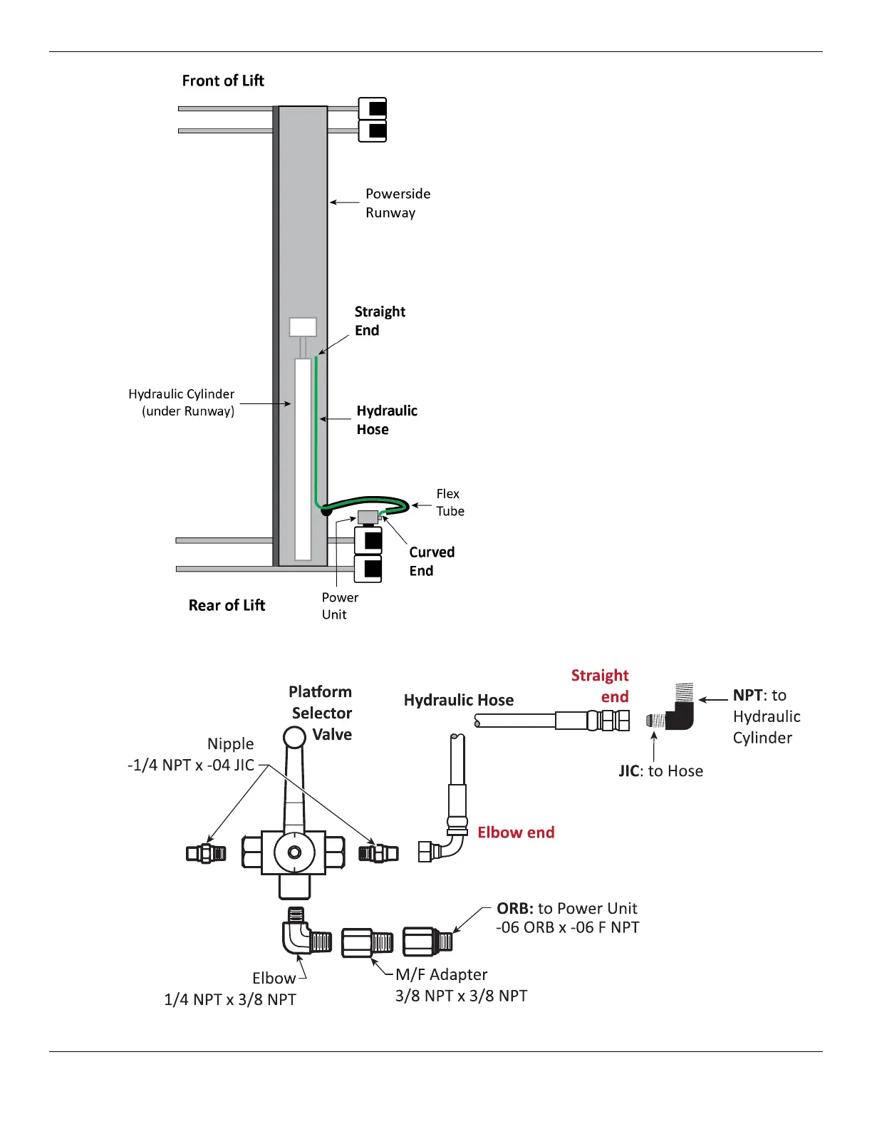 The figure below displays the Hydraulic Hose and its connectors in more detail.