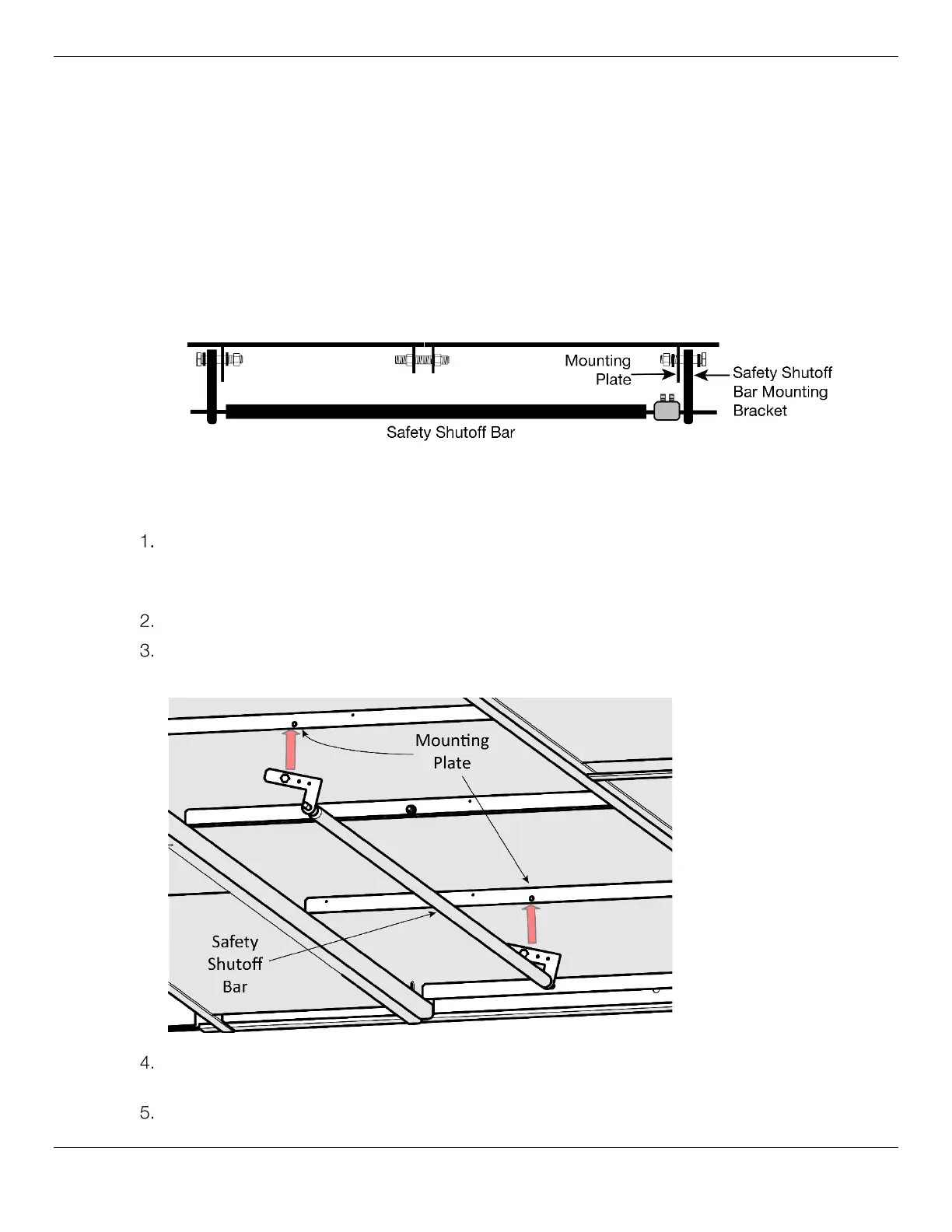 Find the Safety Shutoff Bar, then align the marked holes on the Safety Bar Mounting Bracket with