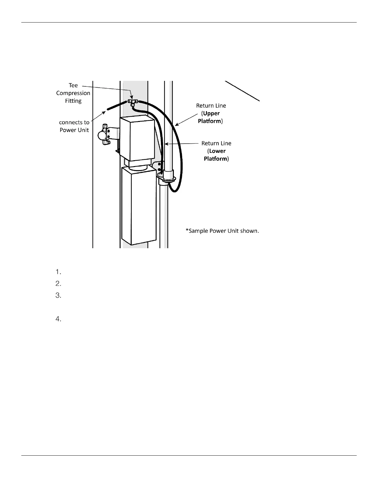 On each Platform, one end of the Return Line is already connected to the Hydraulic Cylinder; the other