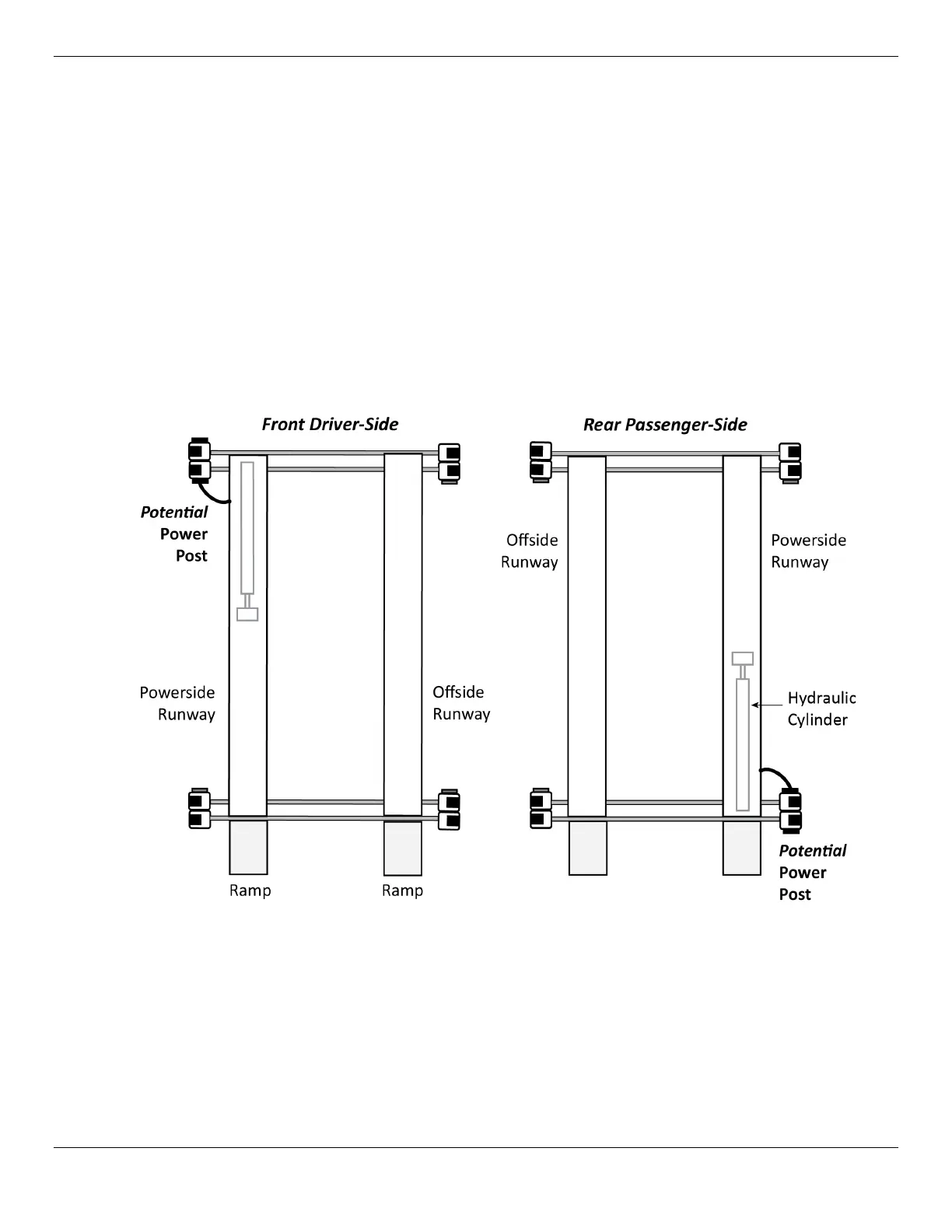 Top view. Hydraulic Cylinder is underneath the Runway. The Drive-up Ramps are not affected by the