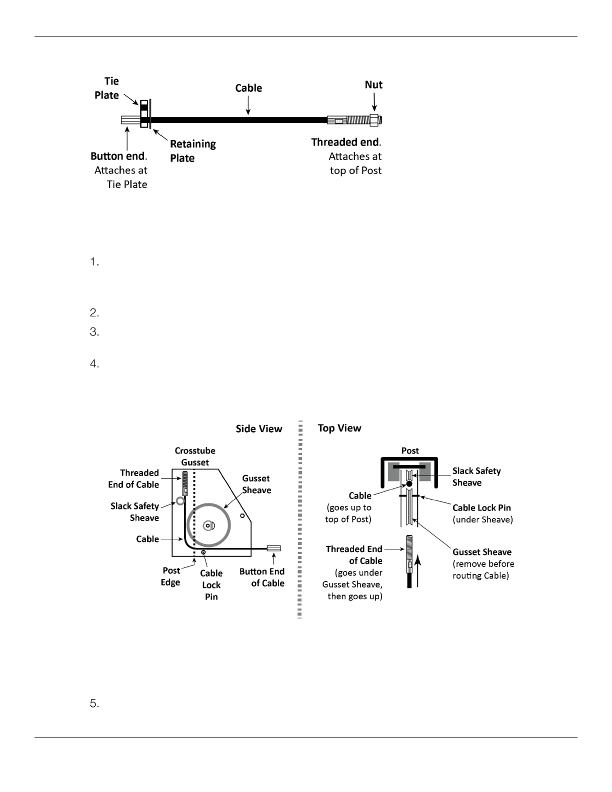 Important: When routing a Lifting Cable in its Post, it must go under where the