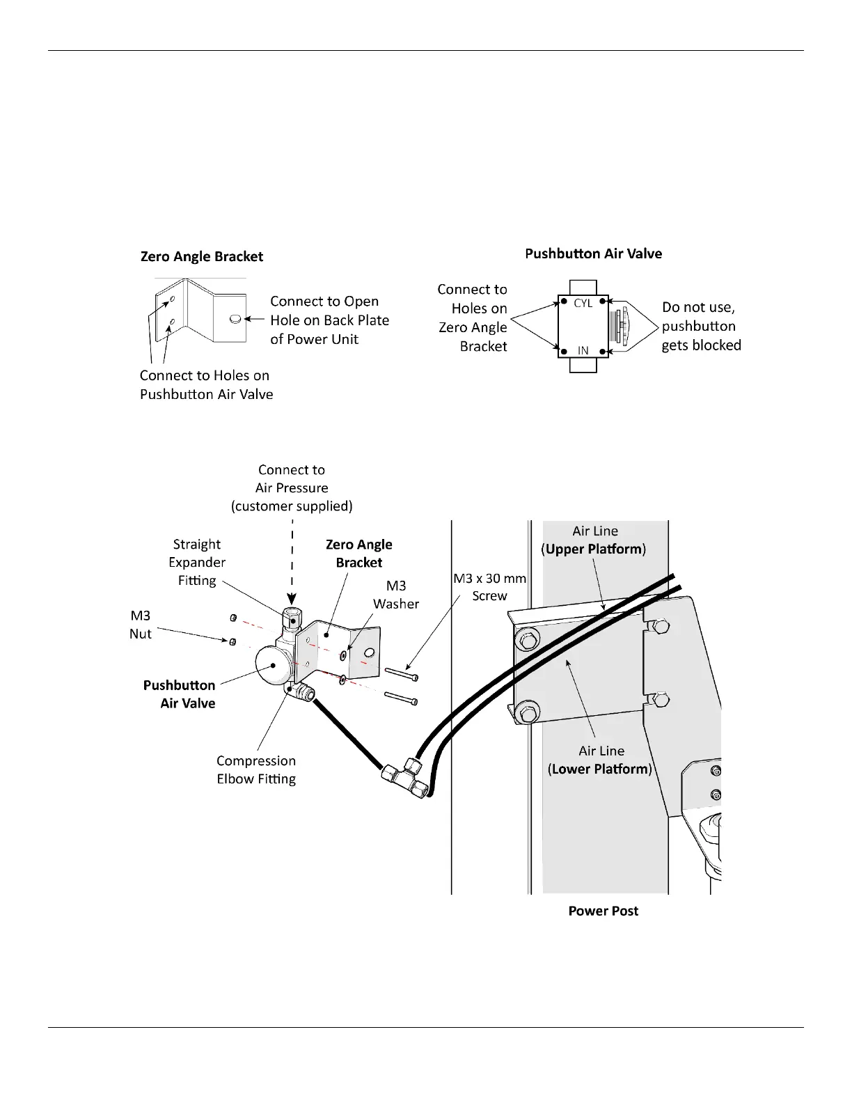 The Pushbutton Air Valve is used to lower the Runways. It can go on either side of the Power Unit, but