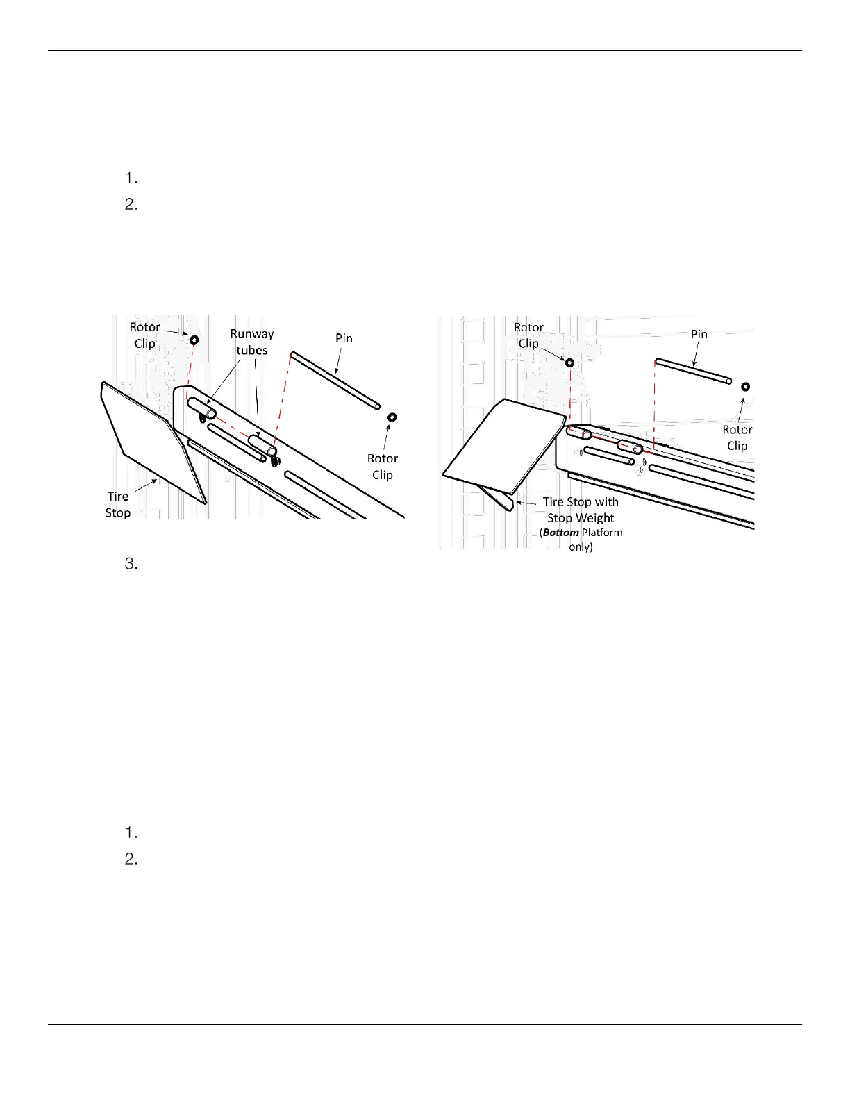 and Runway tubes, and secure the Tire Stop in place with a Rotor Clip on each end of the Pin.