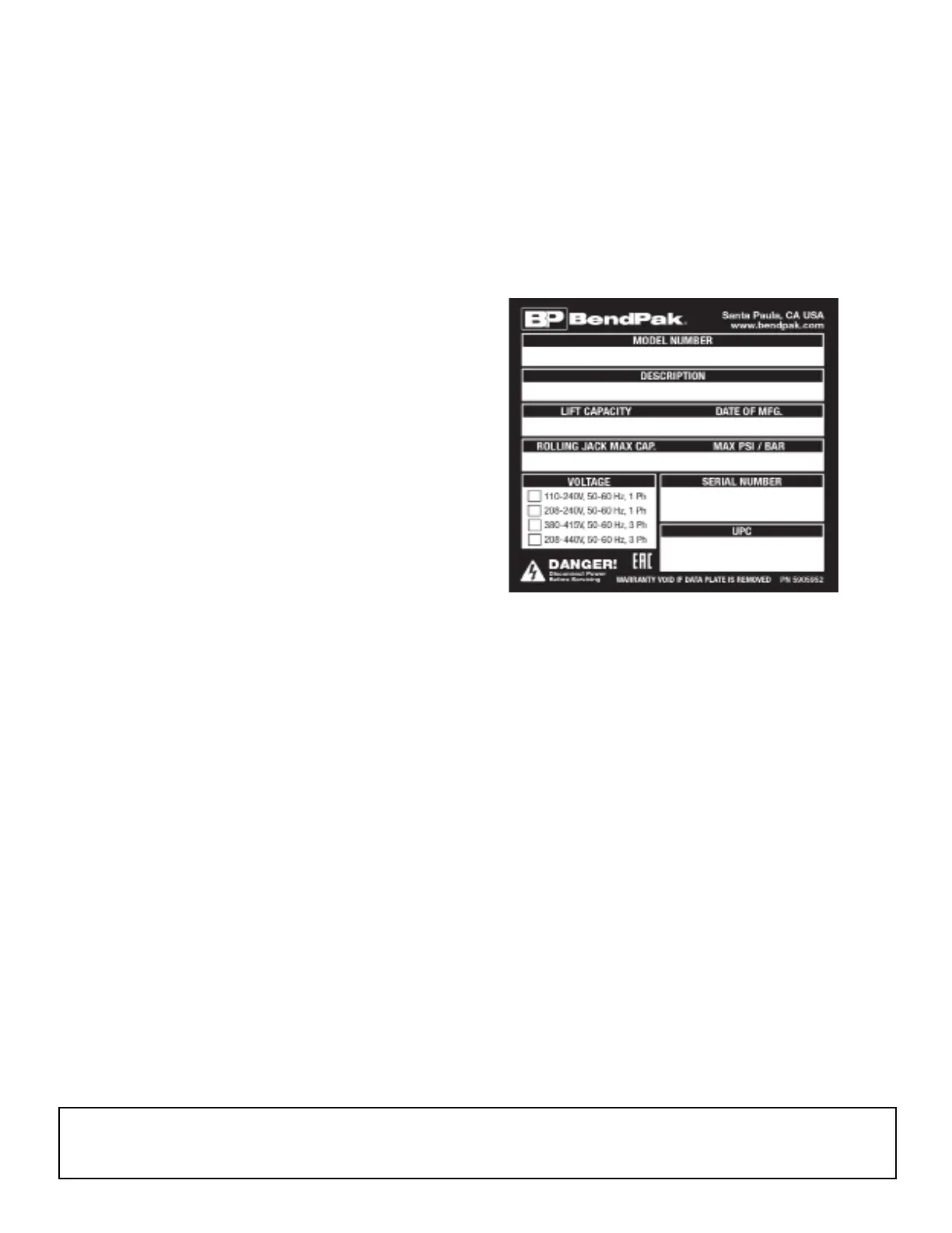 uct updates, revisions and or changes may have occurred since this printing. BendPak Ranger reserves the right to change specica-
