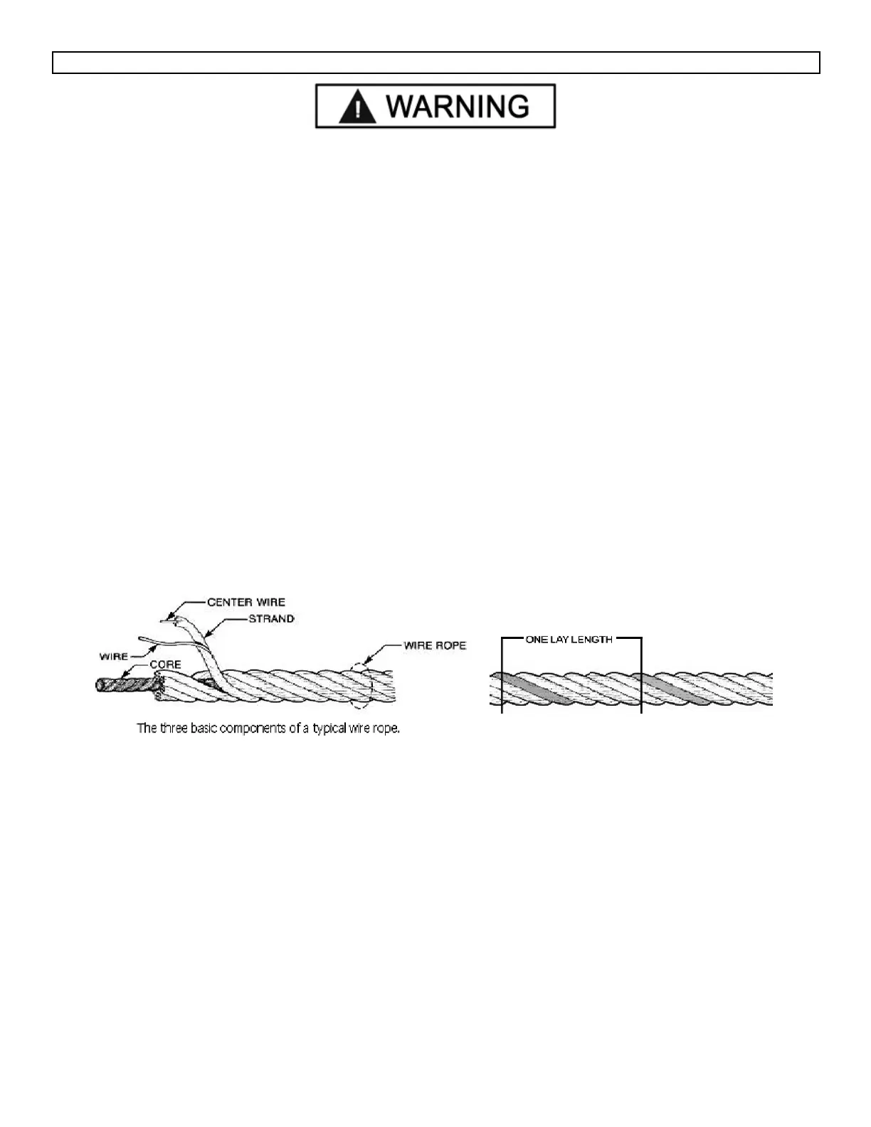 wire strand is lubricated both internally and externally. Excessive wear will shorten the life of the wire rope. The factory sug-