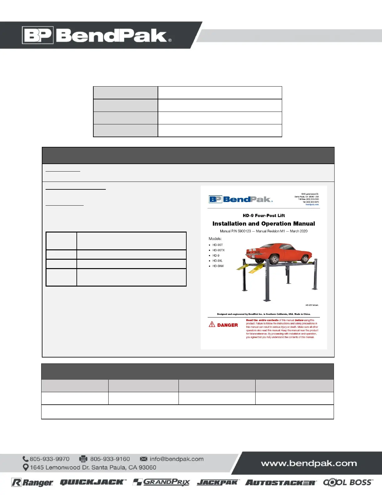 Other manuals for BendPak HD-9STX