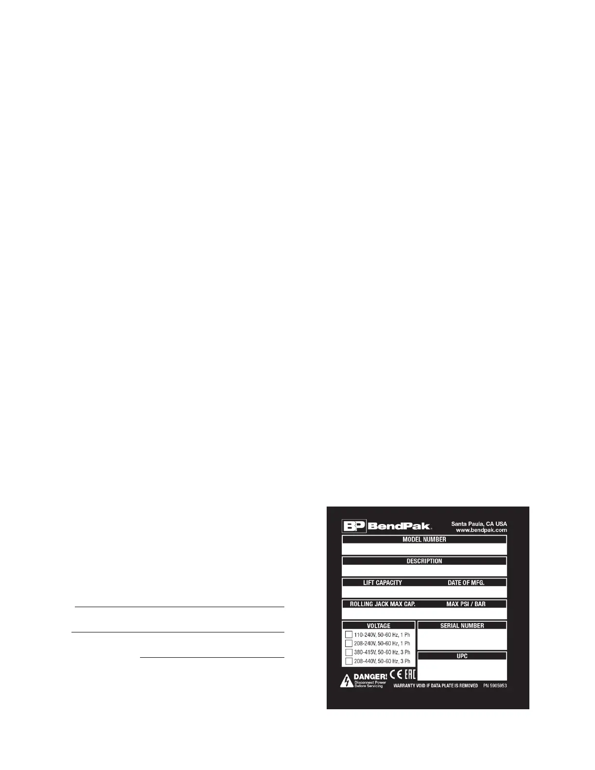 equipment previously or subsequently sold. BendPak is not responsible for typographical errors in this manual.