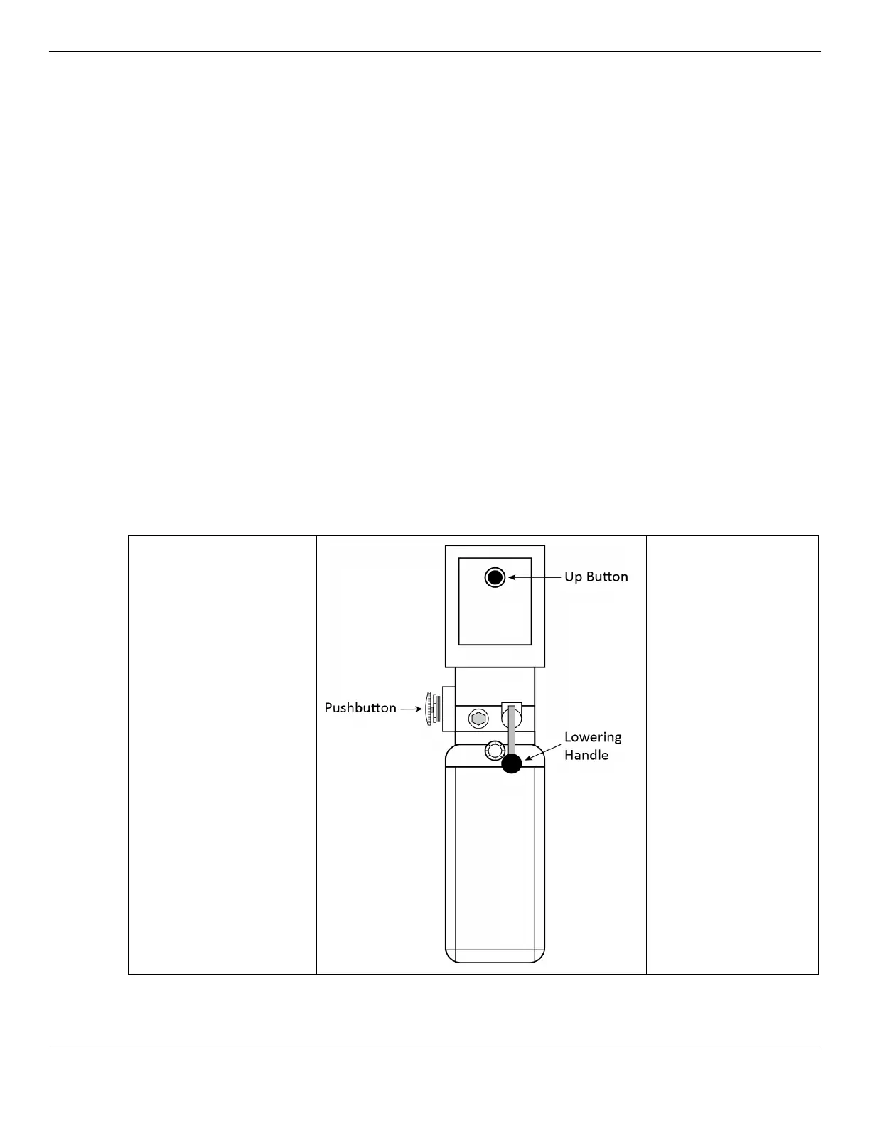 • Up button. Press and hold to raise the Runways. Located near the top of the Power Unit.