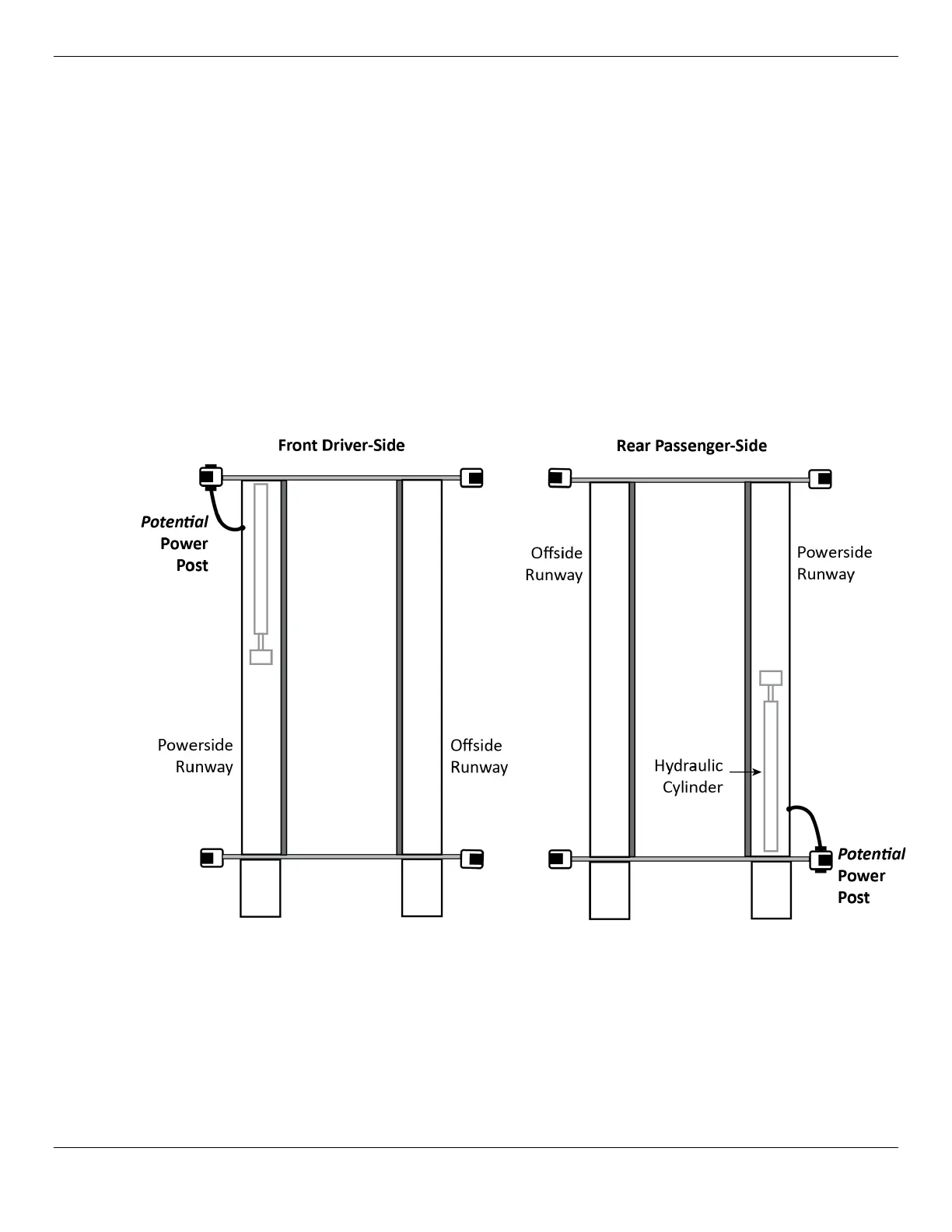 The drawings in this manual show the Power Post at the Rear Passenger-Side, but that does not