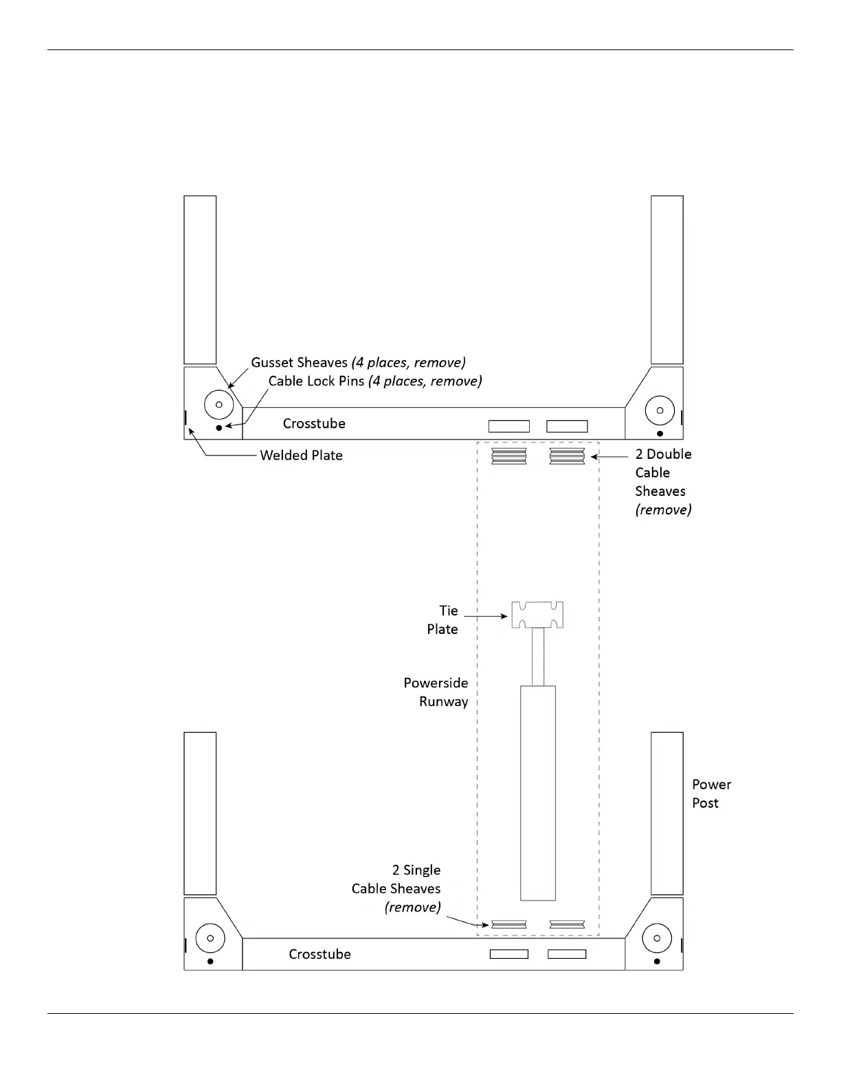 Powerside Runway and the four Gusset Sheaves and their Lock Pins.