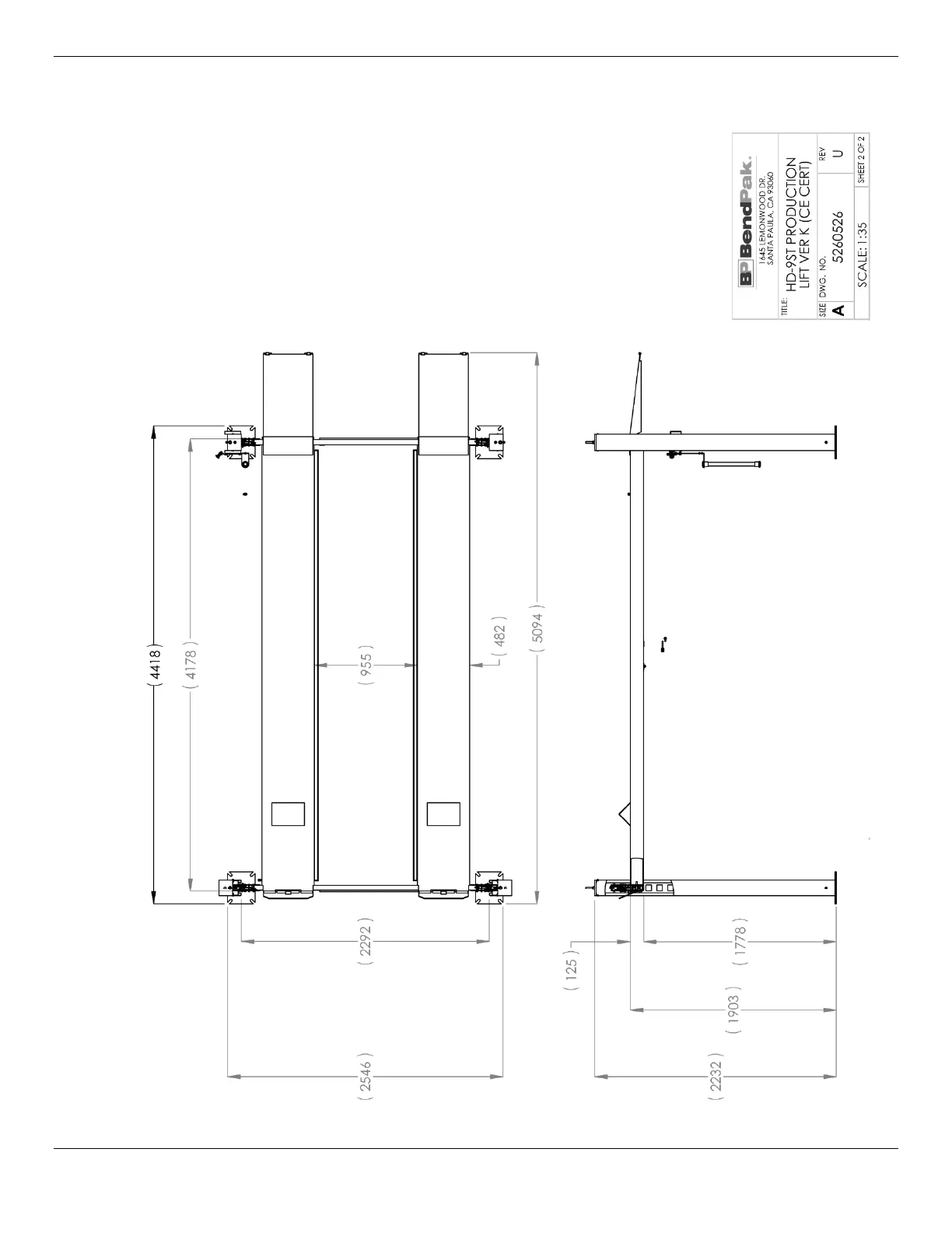 BendPak HD-9XW - Parts Drawings