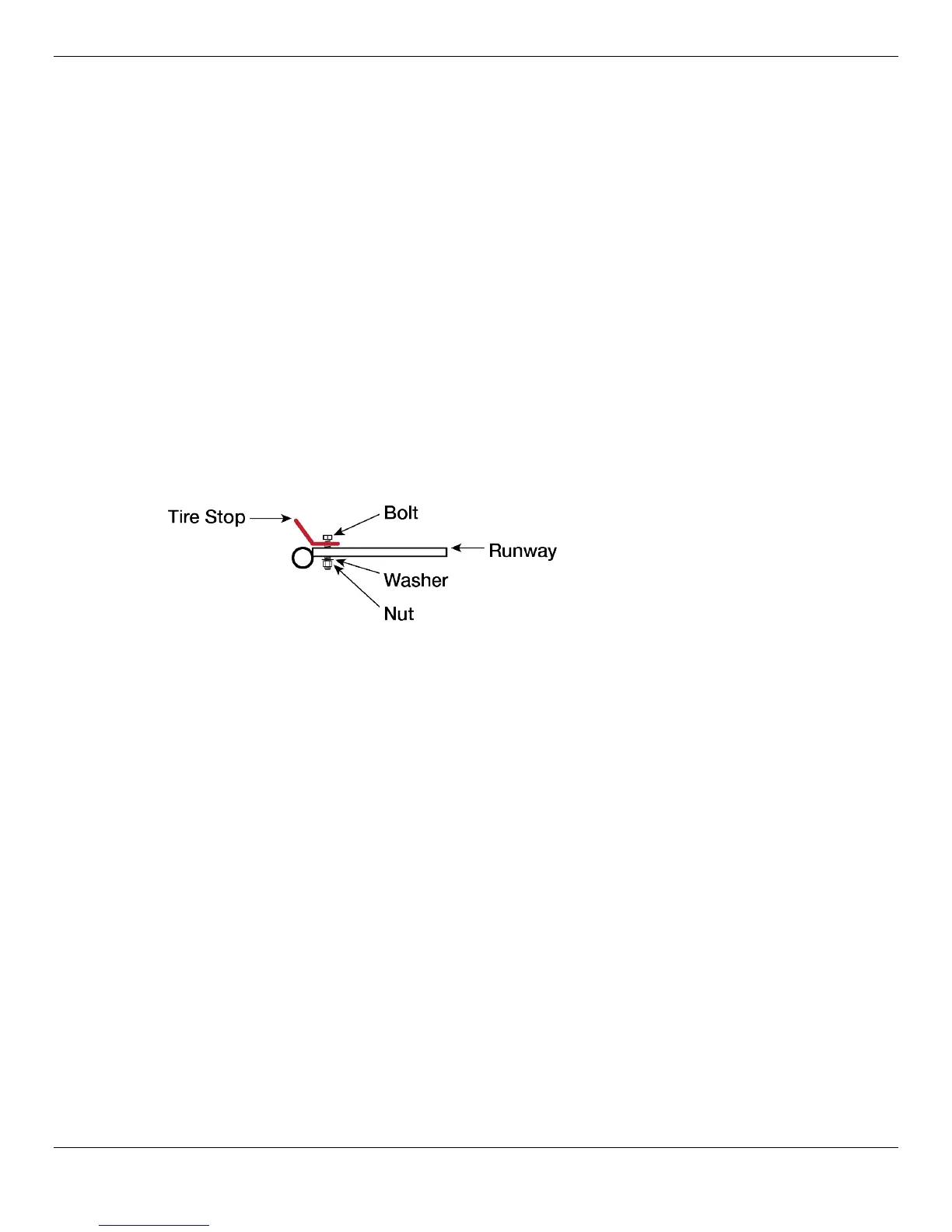 the holes in the Runway, then secure the Tire Stop with the Washer and Nut on the underside of