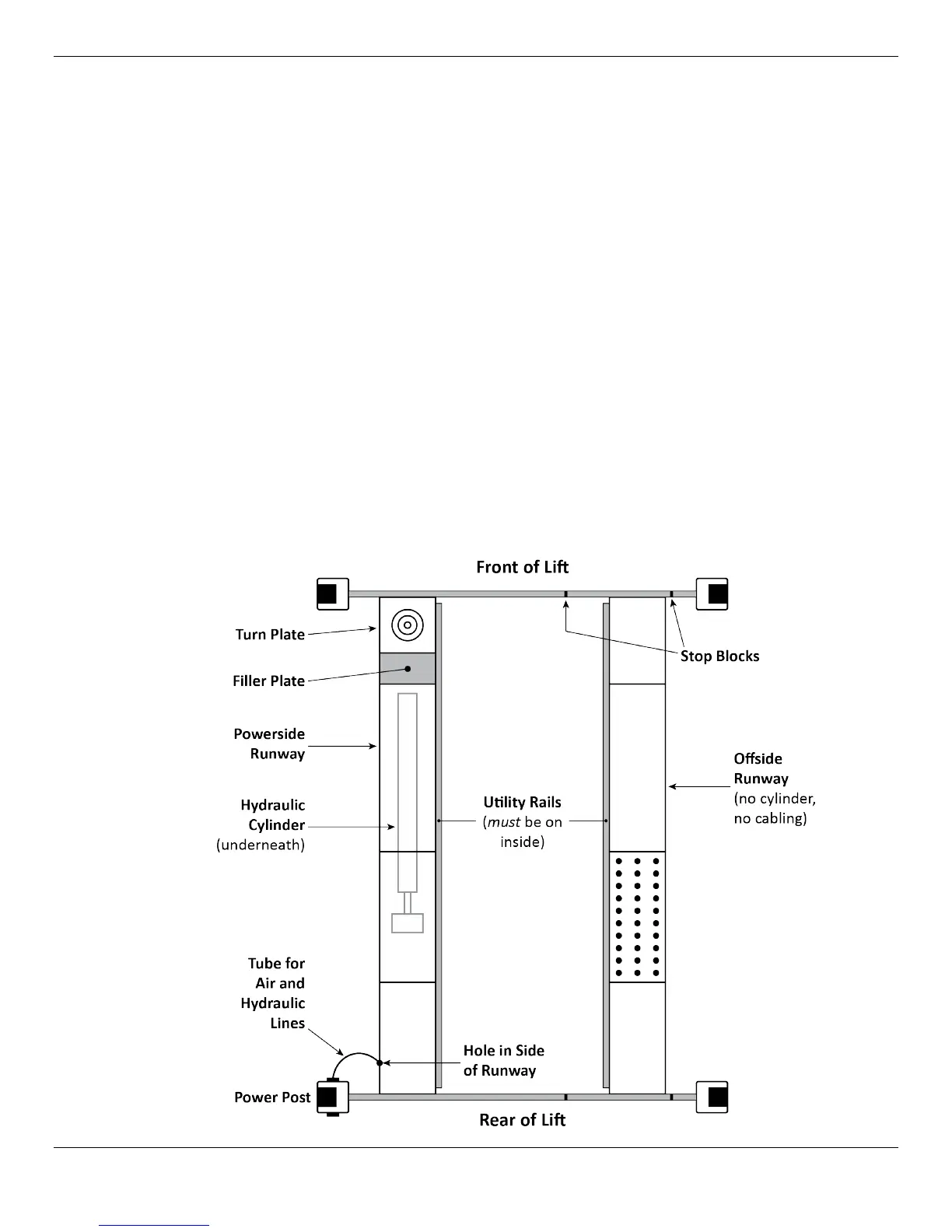 • Powerside Runway: Has the Lift’s Hydraulic Cylinder underneath it. Gets bolted into position.