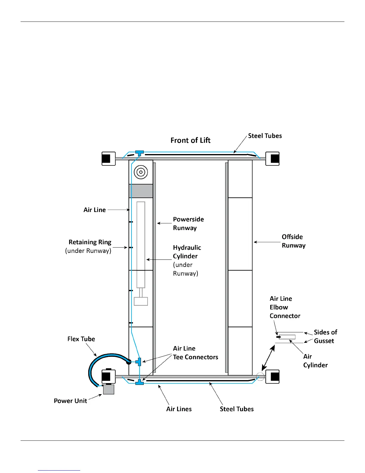 Drawing not to scale. Some components not shown. Air Lines shown outside Steel Tubes for clarity.