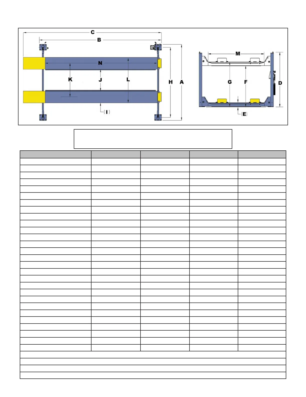 G -Max. Lifting Height 69-1/2” / 1764 mm 69-1/2” / 1764 mm 69-1/2” / 1764 mm 69-1/2” / 1764 mm