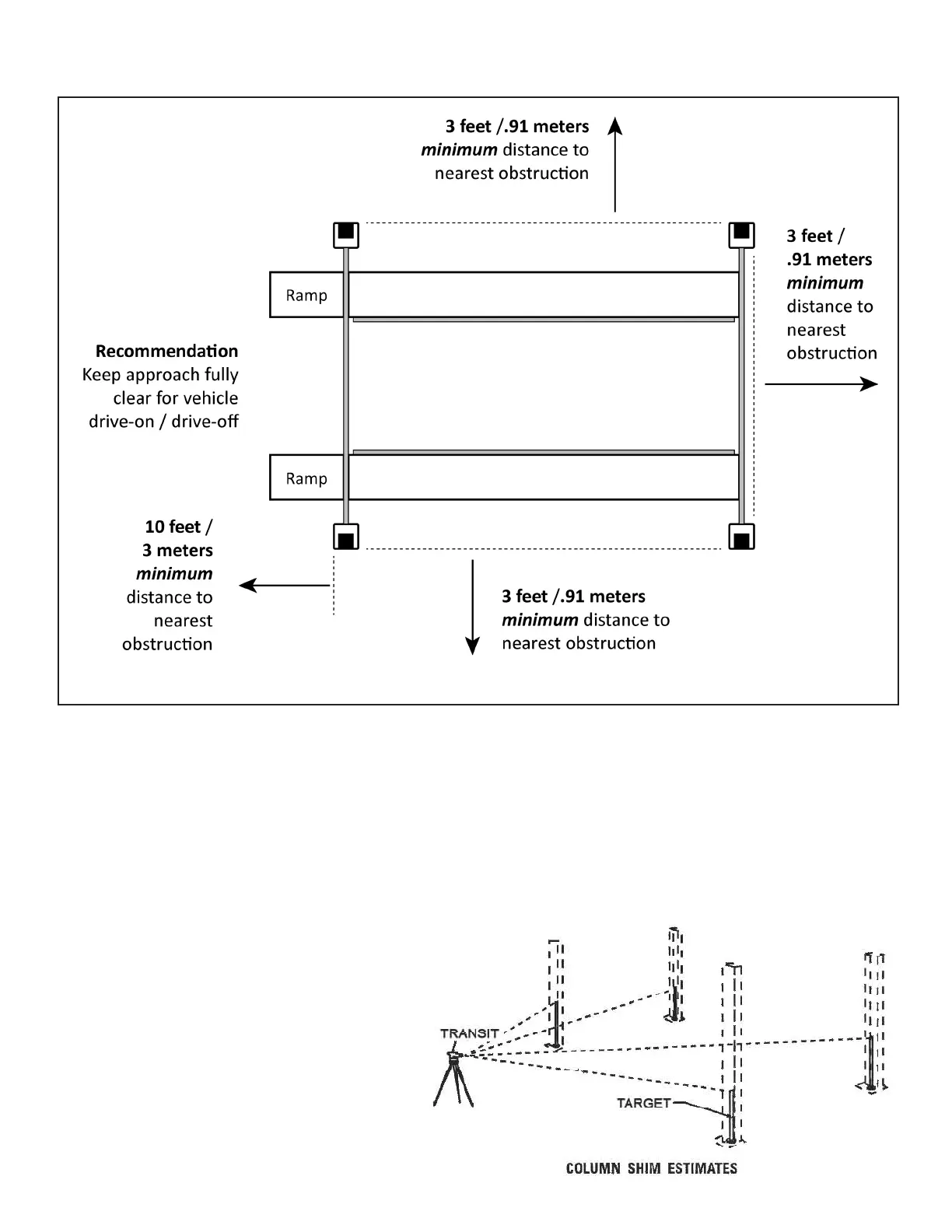 above shows clearances of a typical bay layout. Lift oor