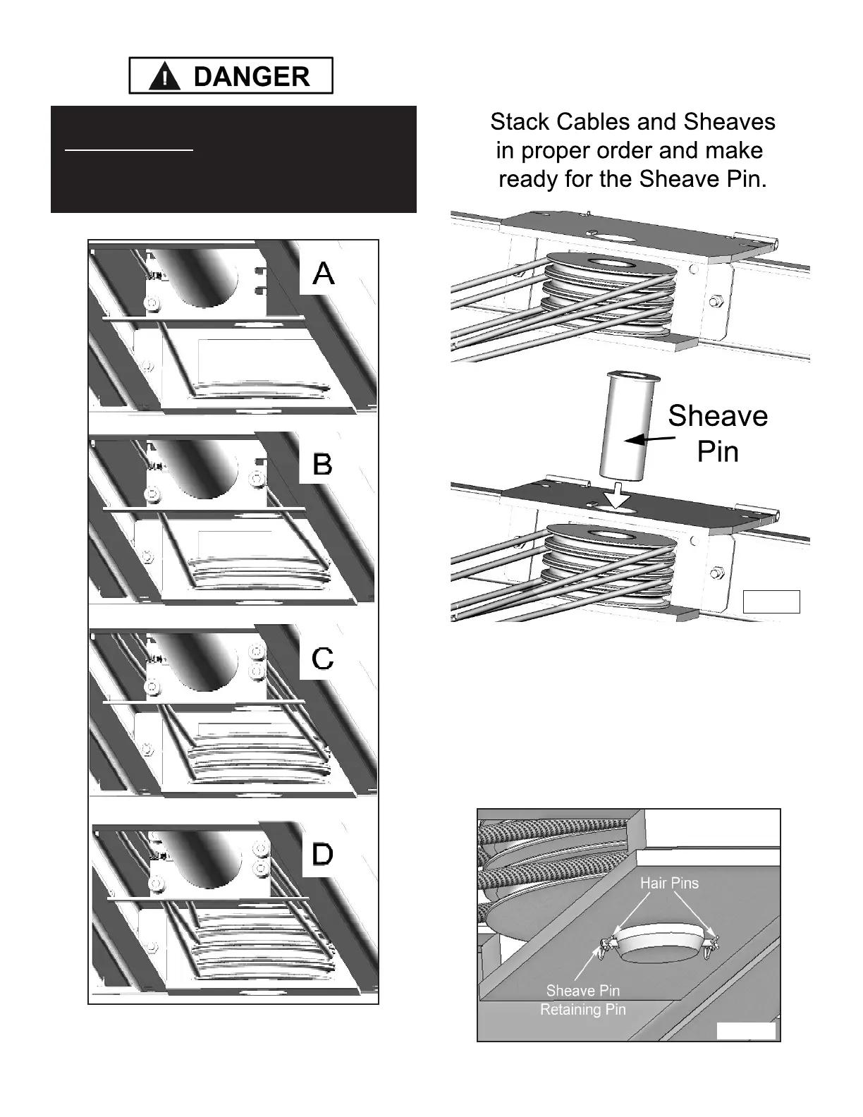 starting with the bottom Sheave and Cable first. Be sure that