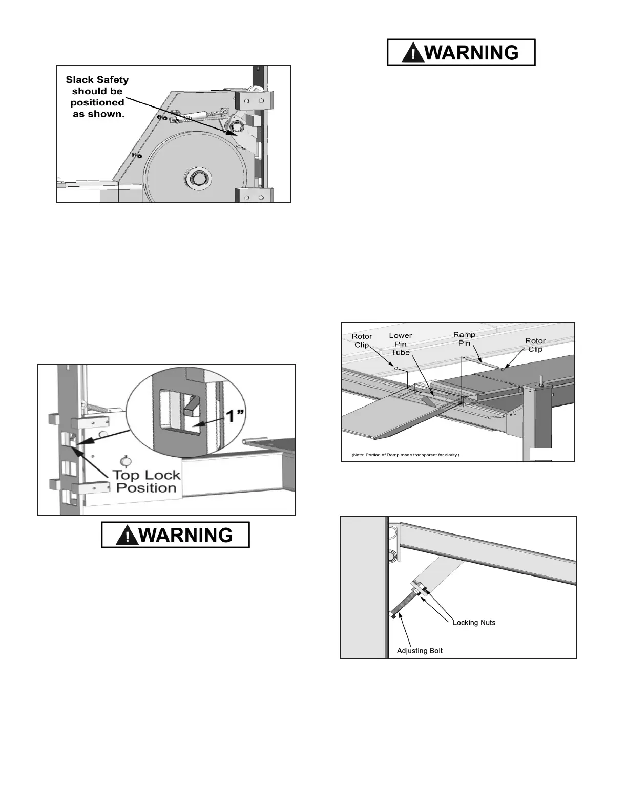 9. Check all MAIN SAFETY LOCKS to make sure they move