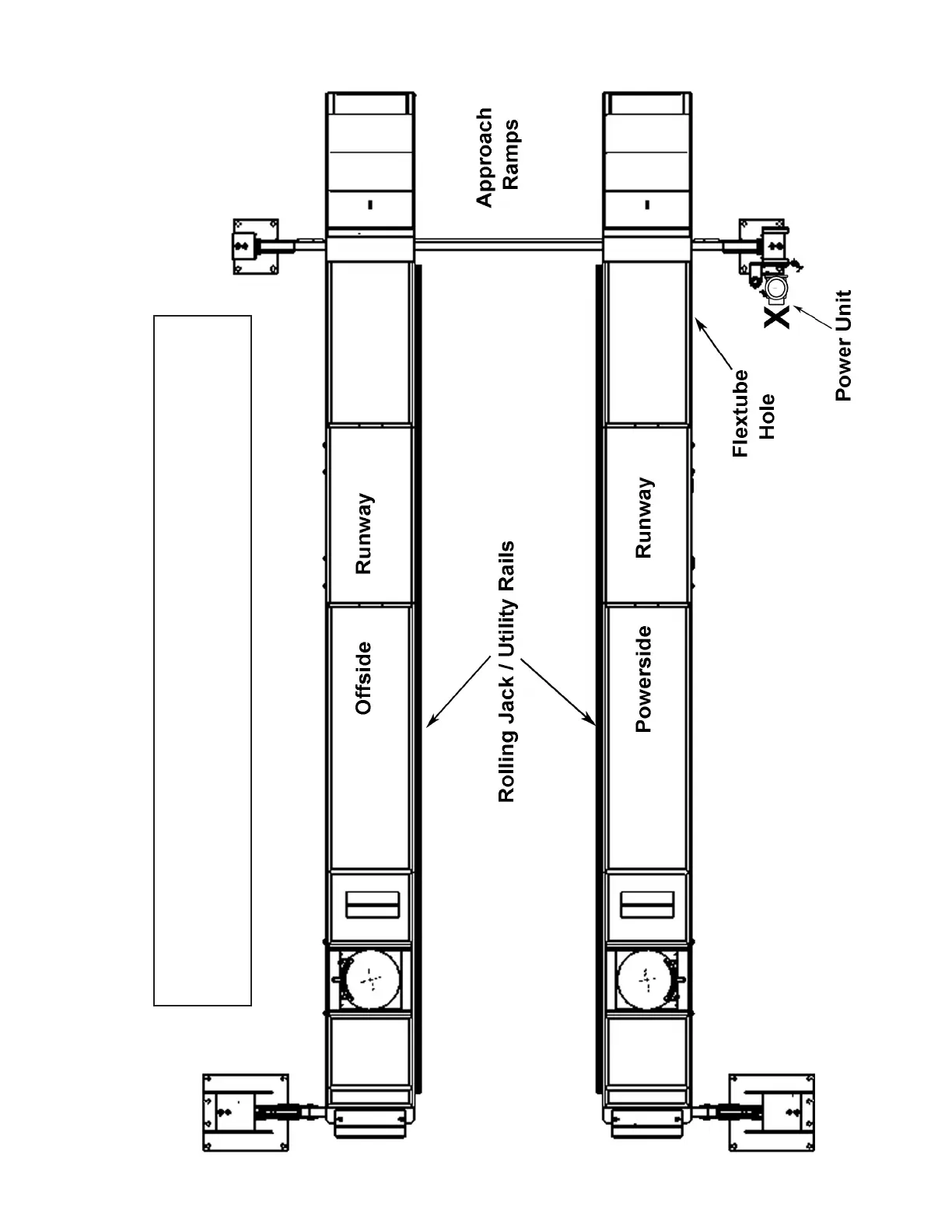 POWER SIDE runway (with cylinder) on the SAME SIDE as the power unit location.