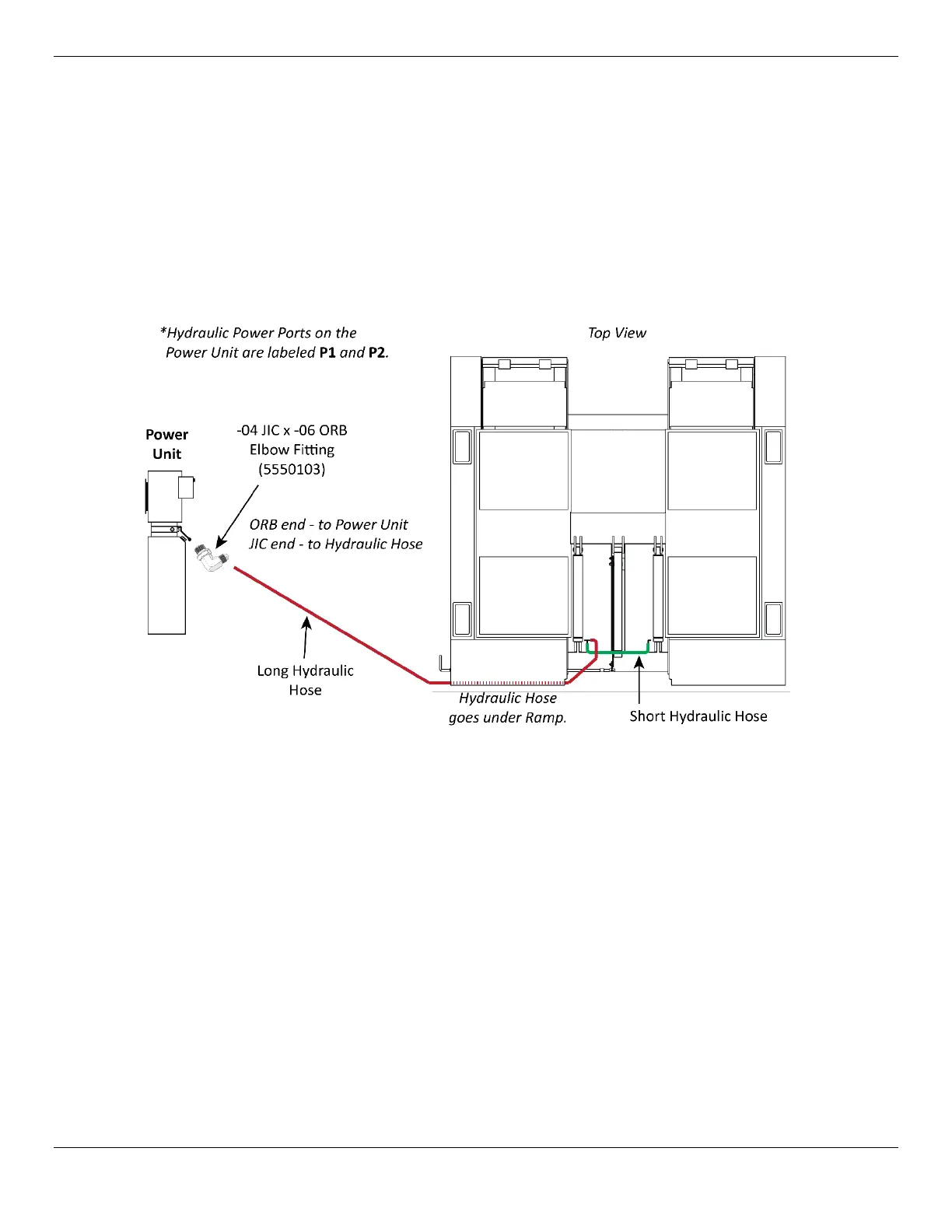 5. Route the Long Hydraulic Hose under the Short Ramp, as shown in the drawing above.
