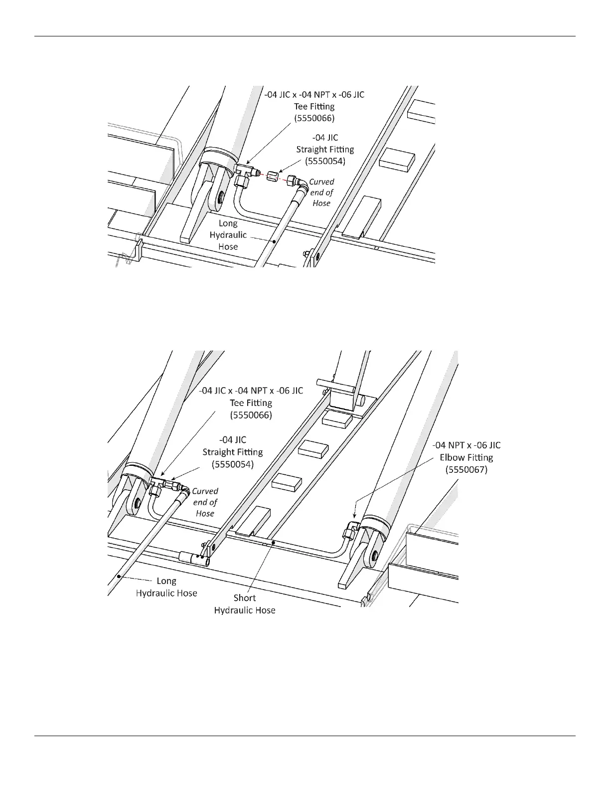 6. Attach the curved end of the Long Hydraulic Hose to the Tee Fitting (5550066) on the Hydraulic
