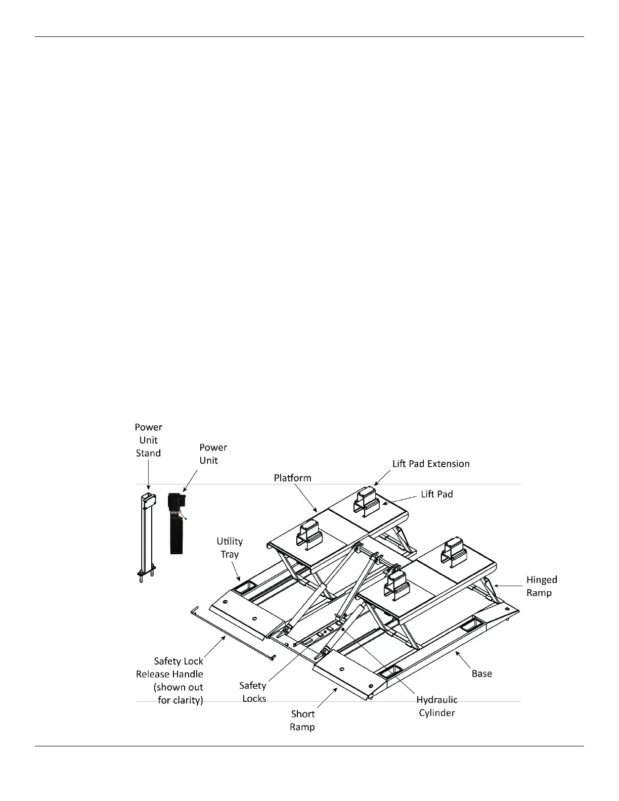 • Hydraulic Cylinders. Push the Platforms up to raise a Vehicle, move down to lower a Vehicle.