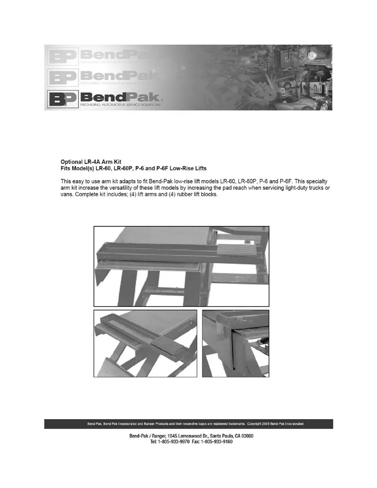 BendPak LR-60P - Optional Equipment