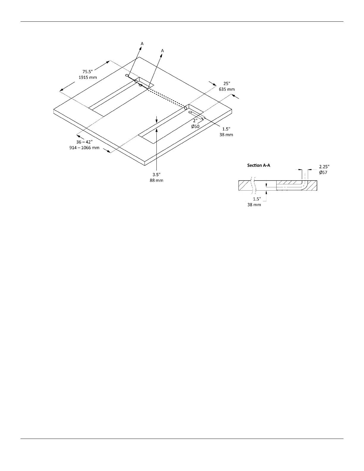 If you need to prepare a recessed surface for the P-9000LTF, use the following diagram as a guide.