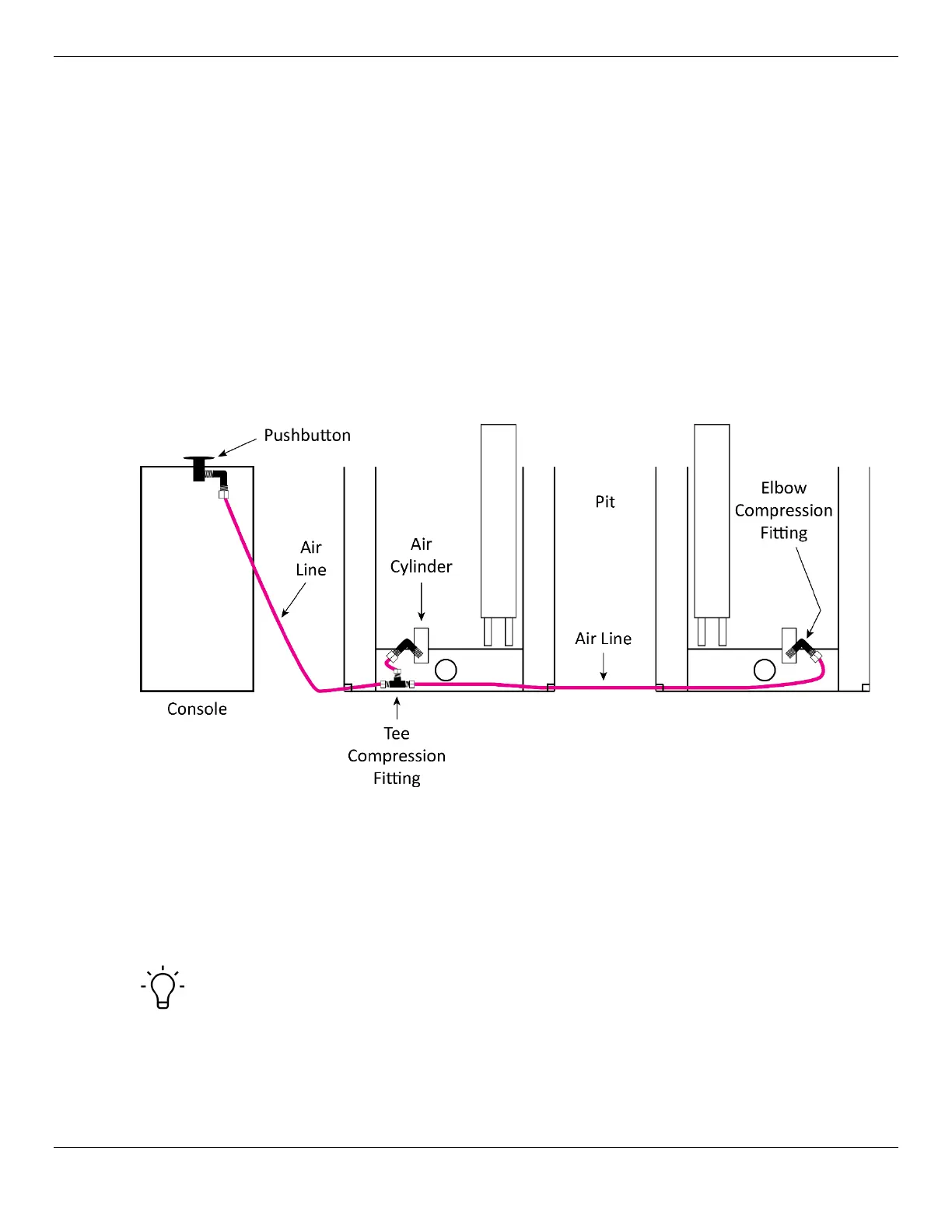 The following drawing shows how to route the Air Line from the Console to the Air Cylinders.