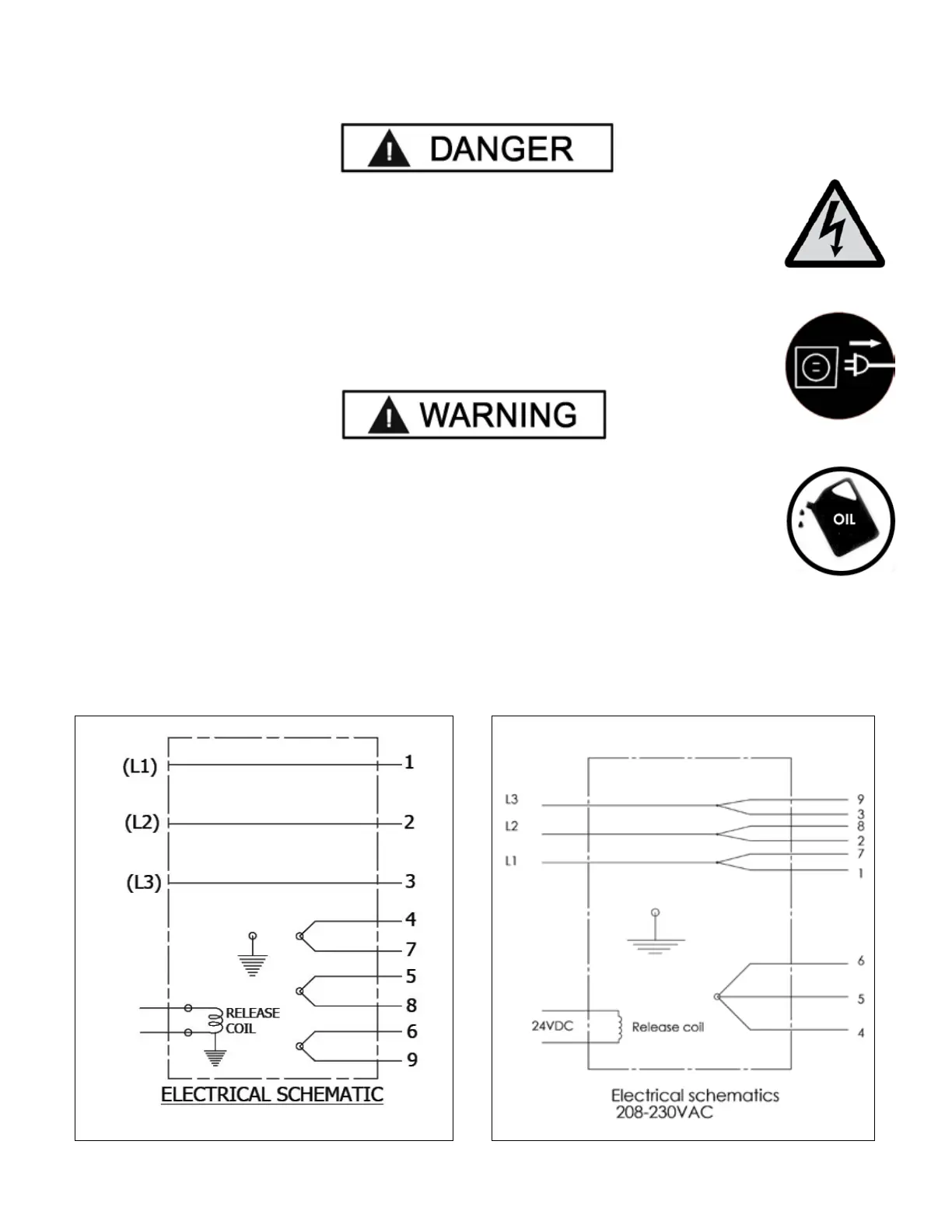 DELAY FUSE OR CIRCUIT BREAKER. FOR 208-230 VOLT, THREE PHASE,