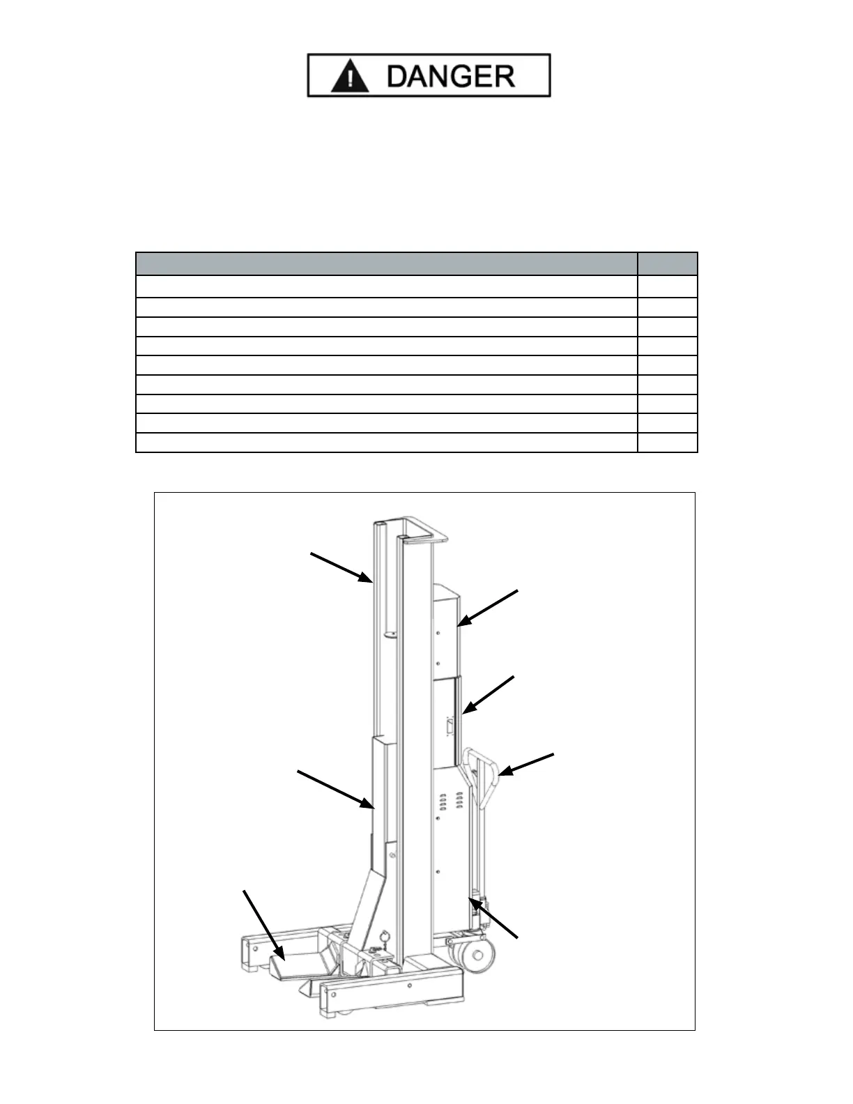 When removing the lift from shipping angles, pay close attention as the columns can slide and can cause injury. Be