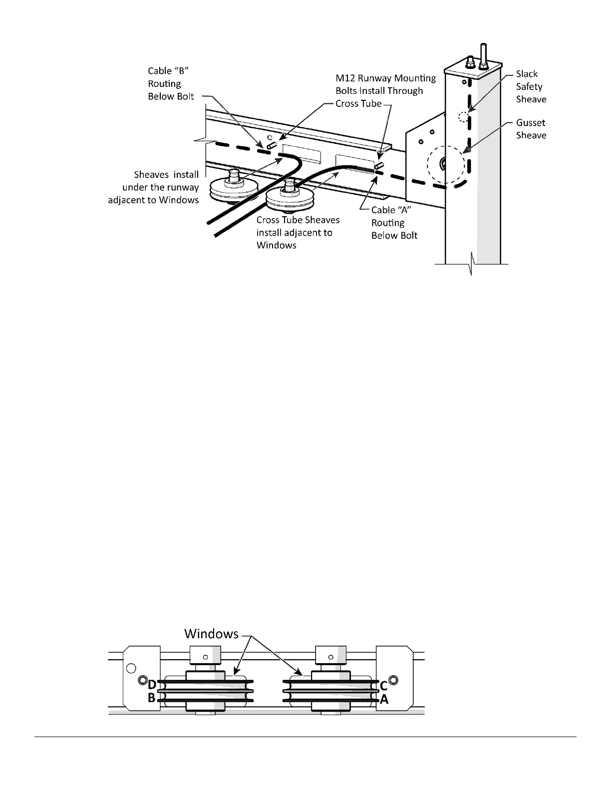 The following drawing shows how to route the Lifting Cables around the Double Cable Sheaves.