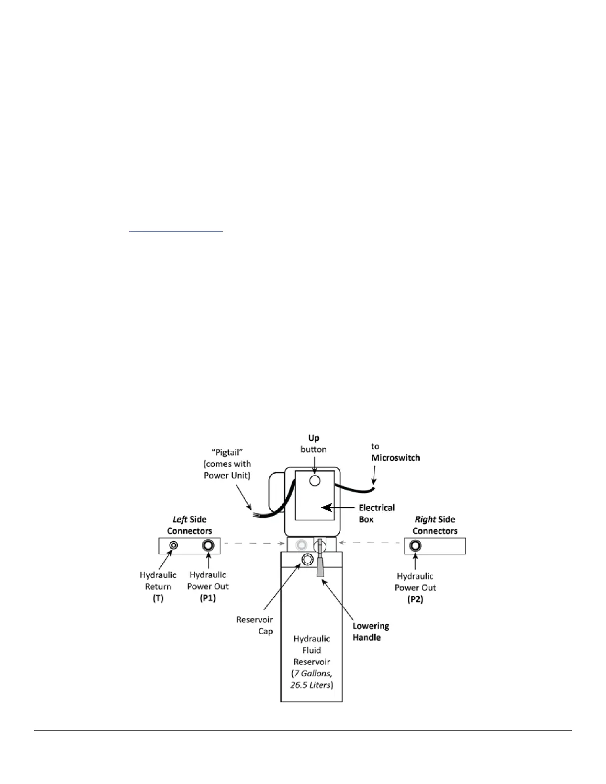 The following figure shows the configuration for the Power Unit. P1/P2 represents the Hydraulic