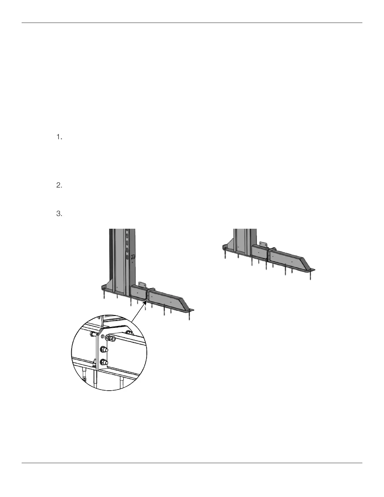 Attach the Front Supports to both Posts using (6) Six M12 x 45 Hex Head Bolts with Ø12 mm Flat