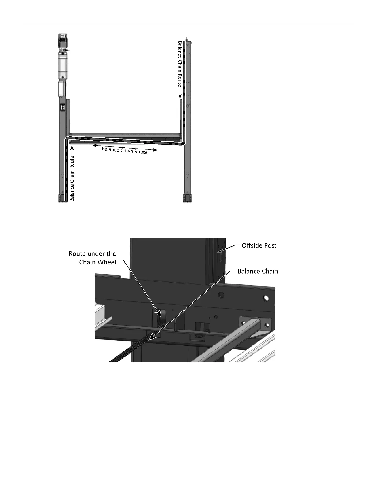 through the Beam and over the Chain Wheel to the bottom of the Powerside Post. Refer to the