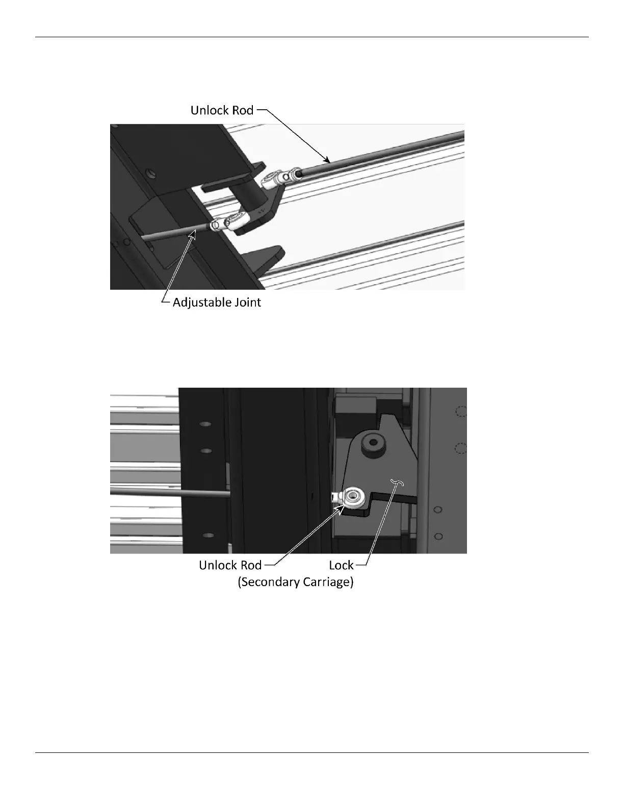 5. Connect the Unlock Rod to the Lock on the Offside Lift Carriage using a M6 x 35 Hex Head Bolt