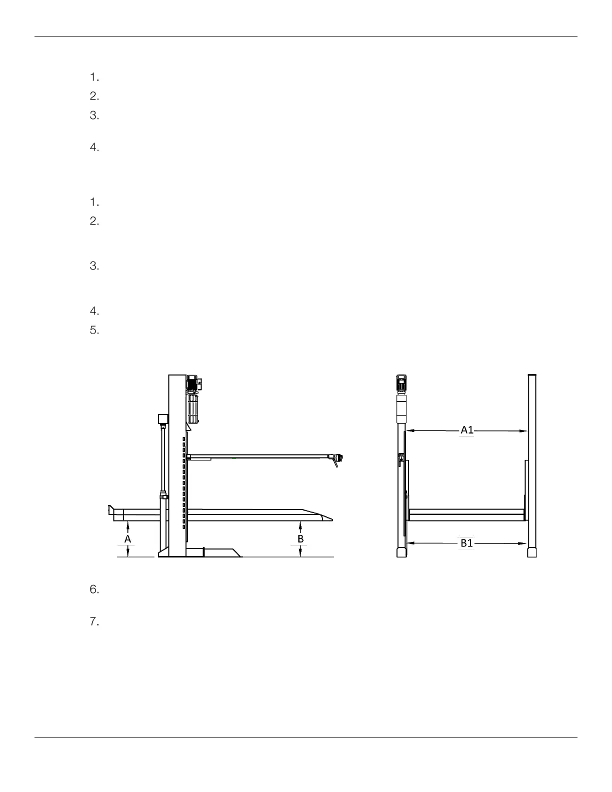 At the completion of this test, verify the Posts are parallel and the Lift Platform is level. A = B and