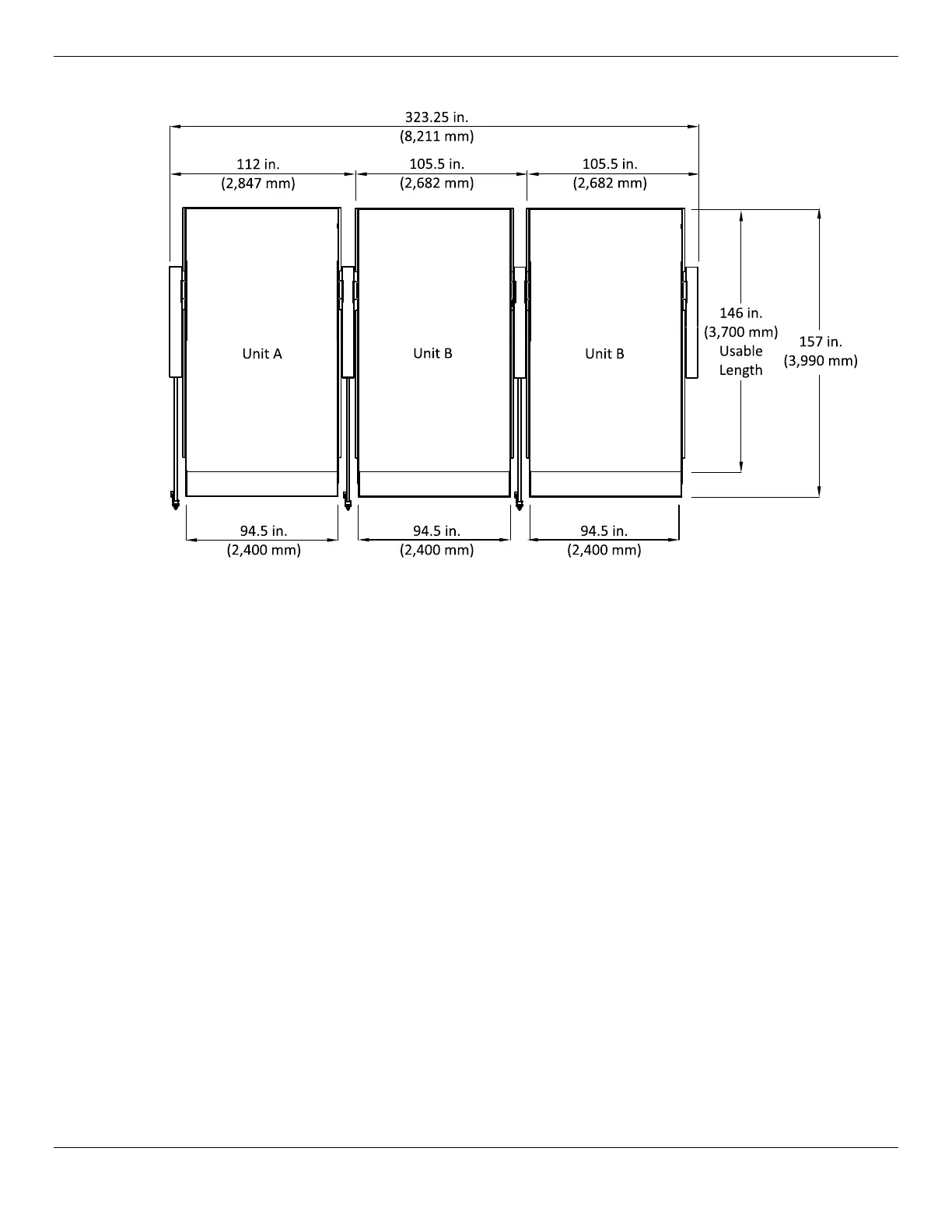 Typical spacing required for three PL-6000DCX Lifts sharing two Posts.
