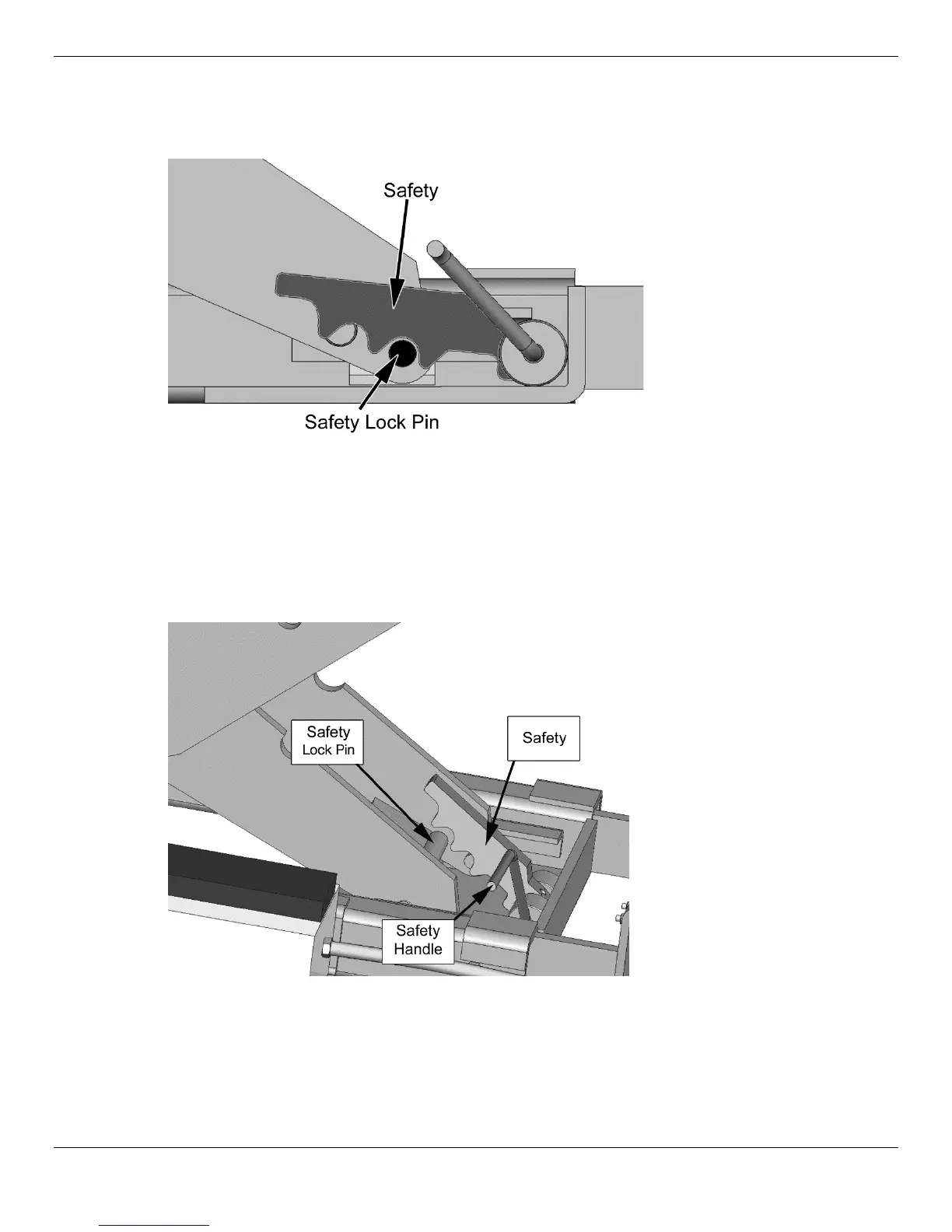 the Safety Lock Pin, pull the Safety Handle up to move it out of the way, then press and hold the