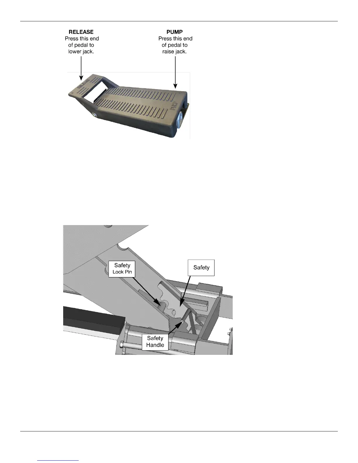 9. Release the RELEASE end of the pump when the Jack settles on the Safety Lock.