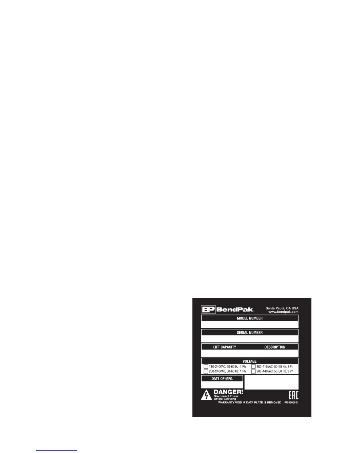 equipment previously or subsequently sold. BendPak is not responsible for typographical errors in this manual.