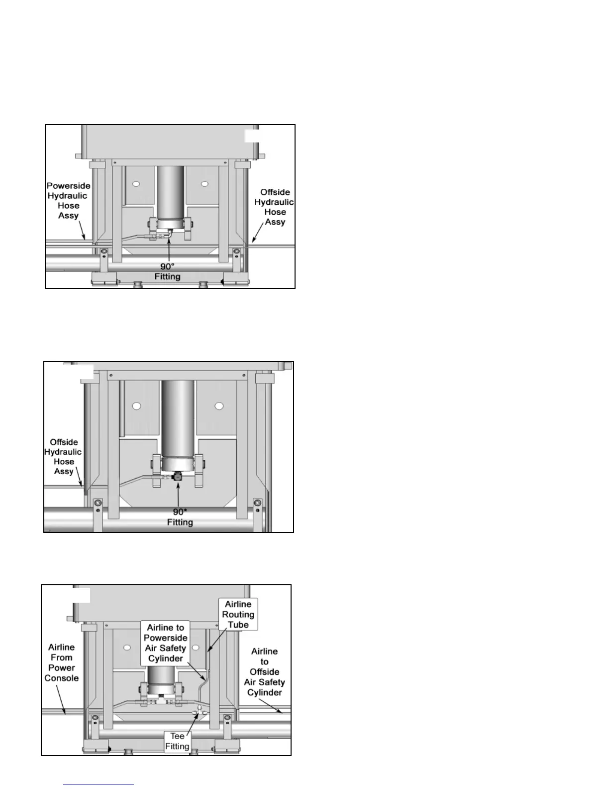 (medium) Hose to the 90° Fitting of the Powerside Cylinder.