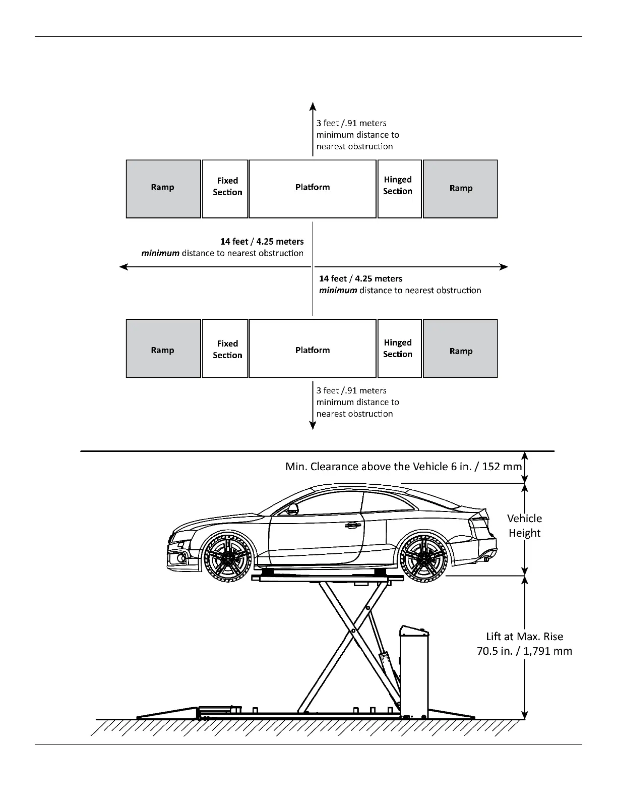 For safety purposes, a reasonable amount of clear space around and above the Lift is required, as