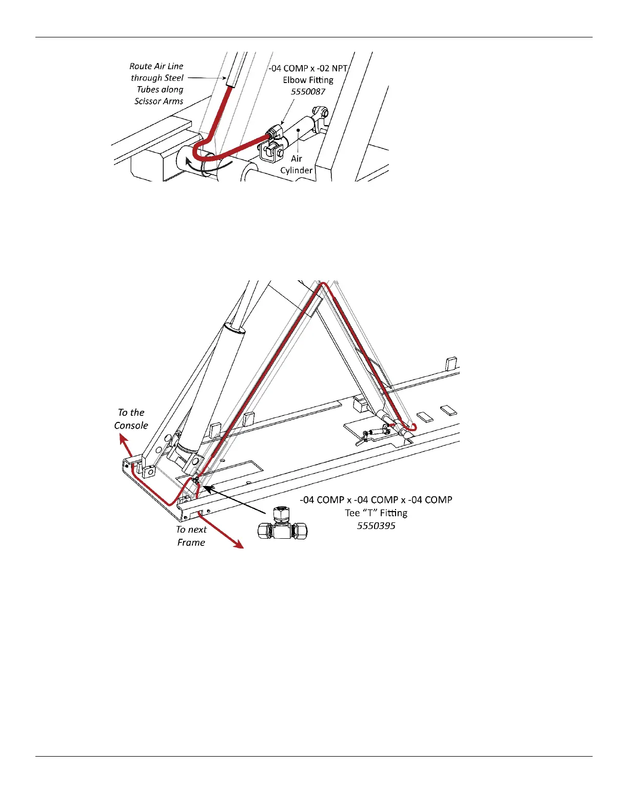 Air Cylinders, routing the Air Line through the Steel Tubes along the Scissor Arms on the Lift.
