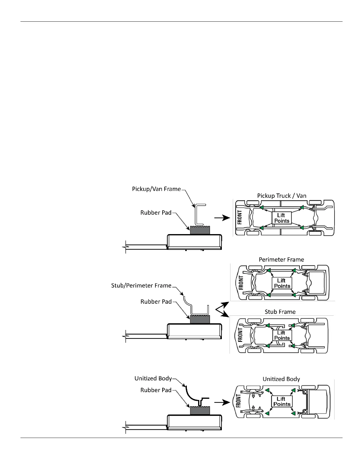 Some vehicles may have the manufacturers’ recommended Service Garage Lift Point locations
