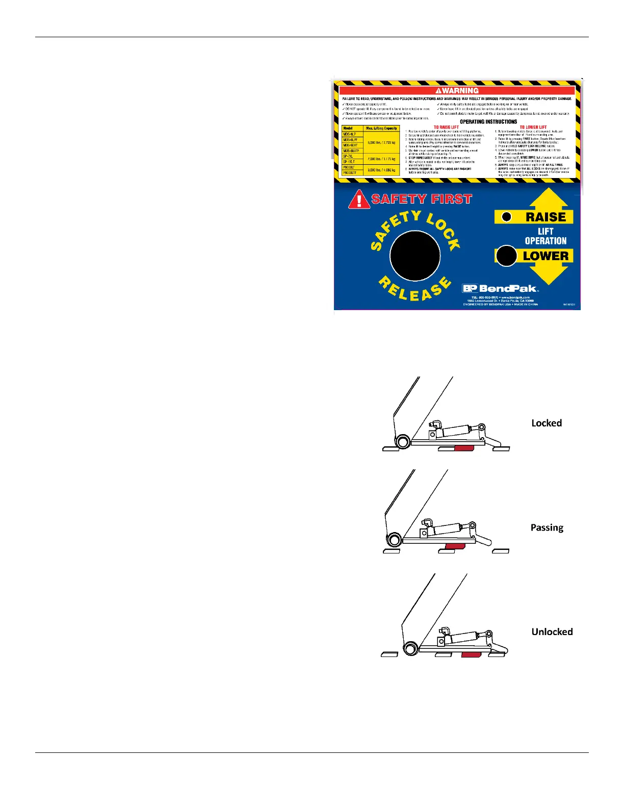 Safety Lock. Never work under a vehicle unless the platform is fully