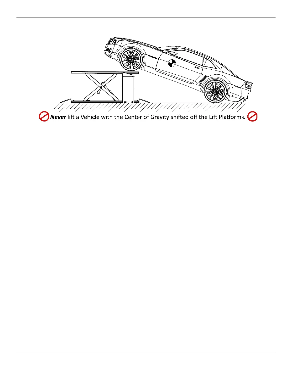 ⚠ WARNING Never raise a Vehicle with the center of Gravity shifted off the Platforms.