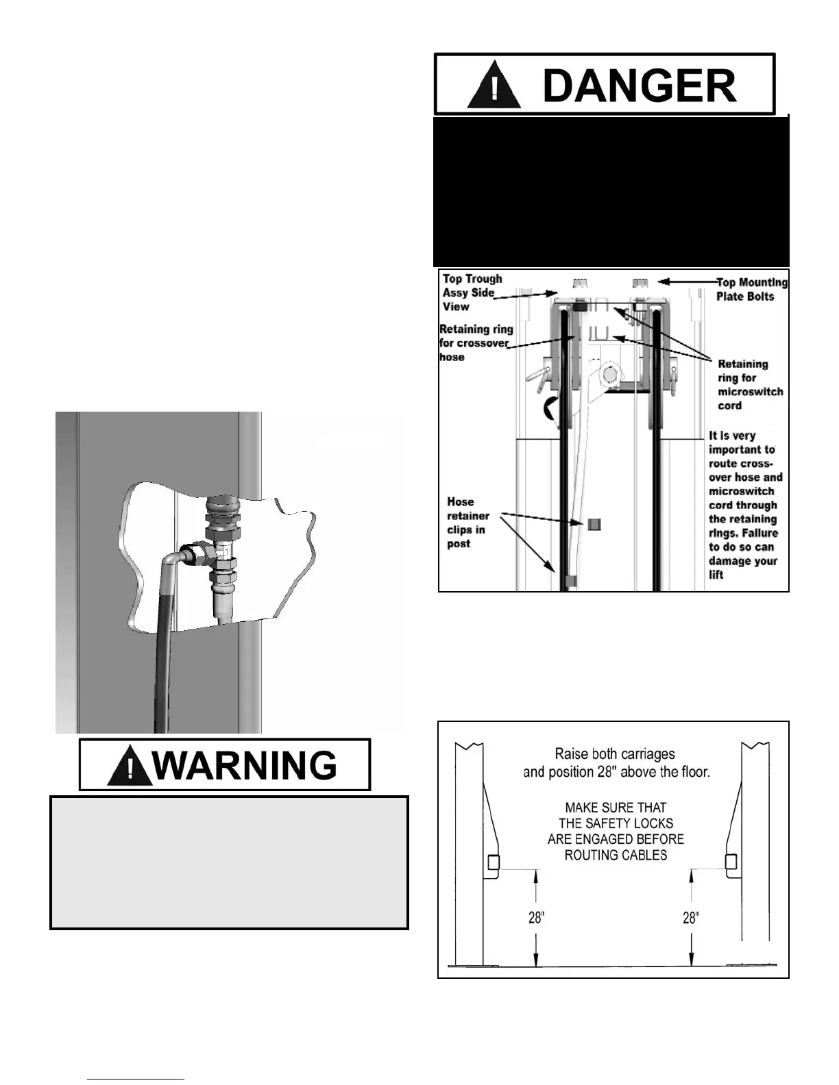 1. Raise and lock each carriage approximately 28”