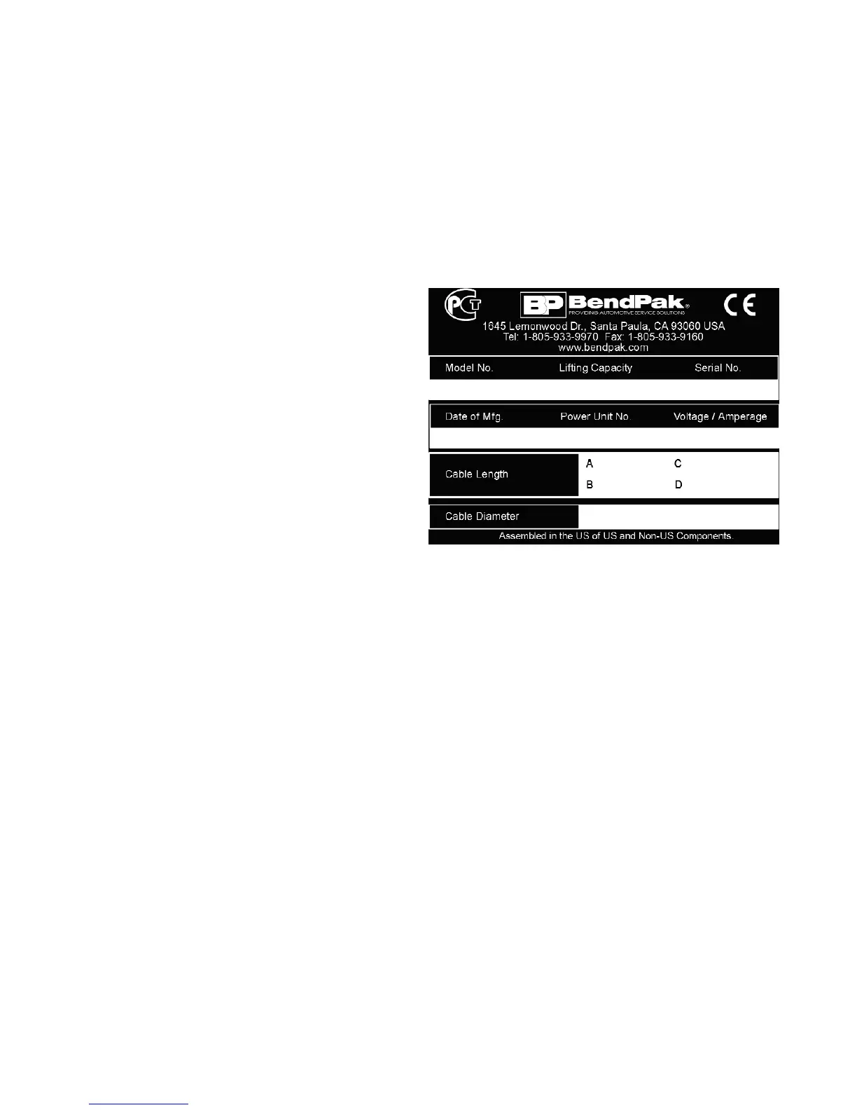 BendPak XP-10AC - General Information and Safety; Product Warranty